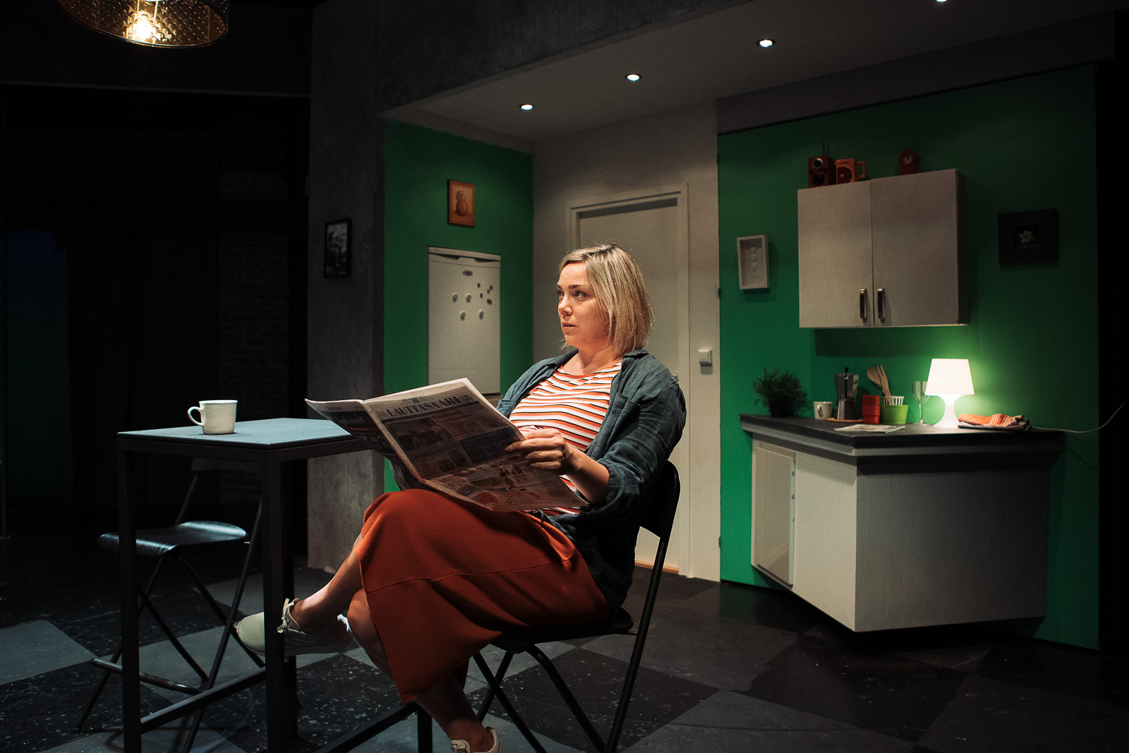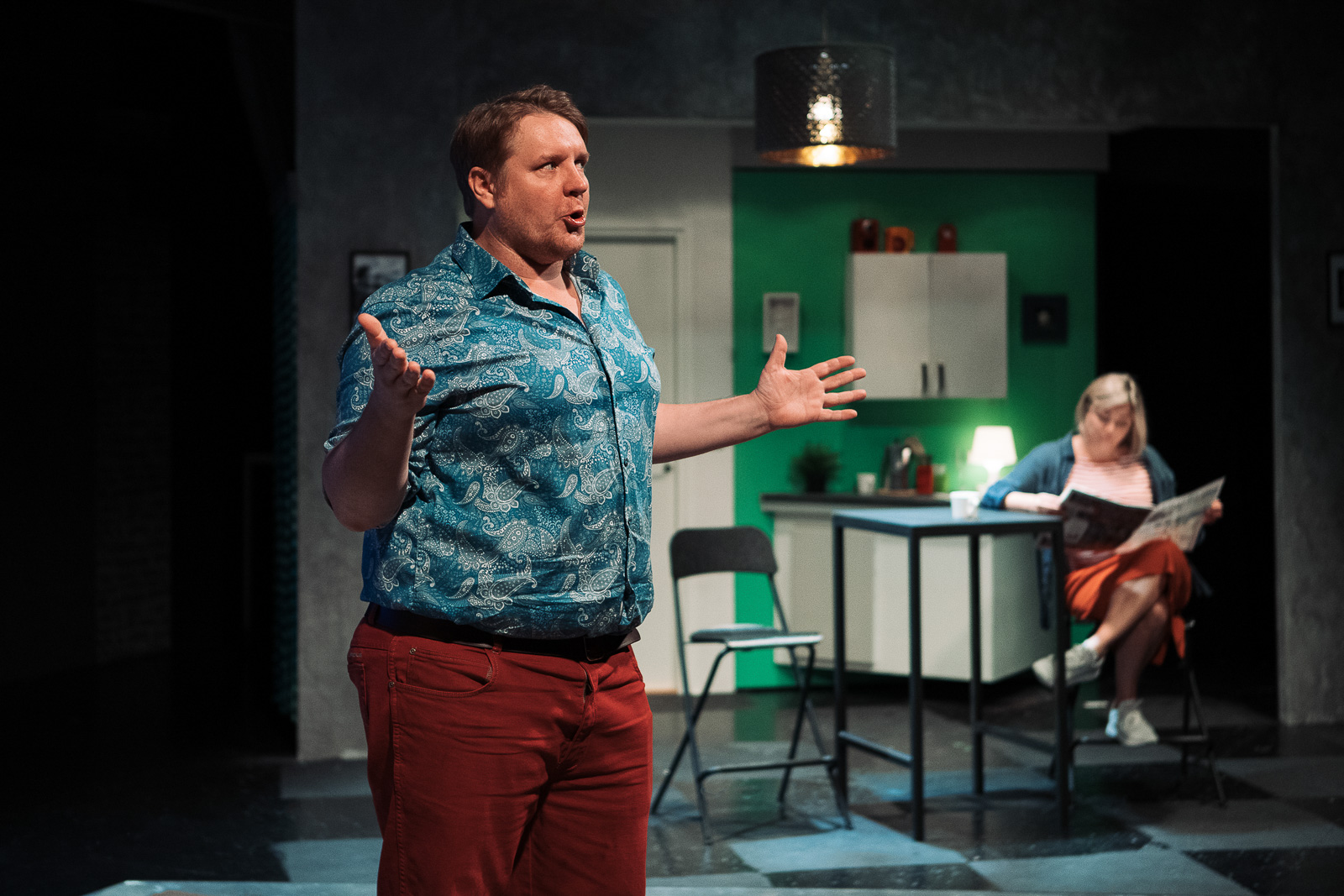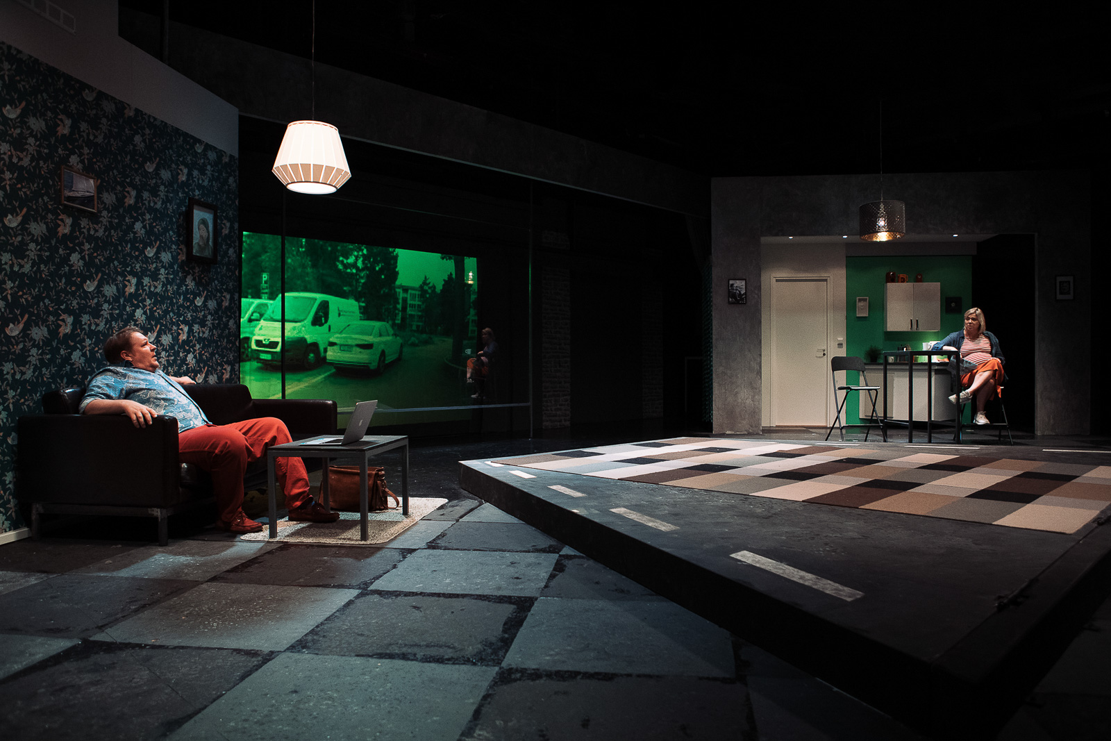 Santtu Karvisen näyttelijätyöskentely on intensiivistä, fyysistä. Pihla Penttisen viileän rauhallinen rooli Naisena vakuuttaa sekin – itse asiassa paremmin, kuin muutamat kohtaukset, joissa hän menettää malttinsa. Katja Küttner ja Matti Onnismaa tekevät kumpikin lukuisia rooleja, ihan onnistuneesti sinänsä, mutta jotenkin katsoja ei kiinnity oikein mihinkään niistä samalla tavalla: Küttnerin keravalaisuuteen hetkittäin ja Onnismaan Rianna-koiraan ehkä.