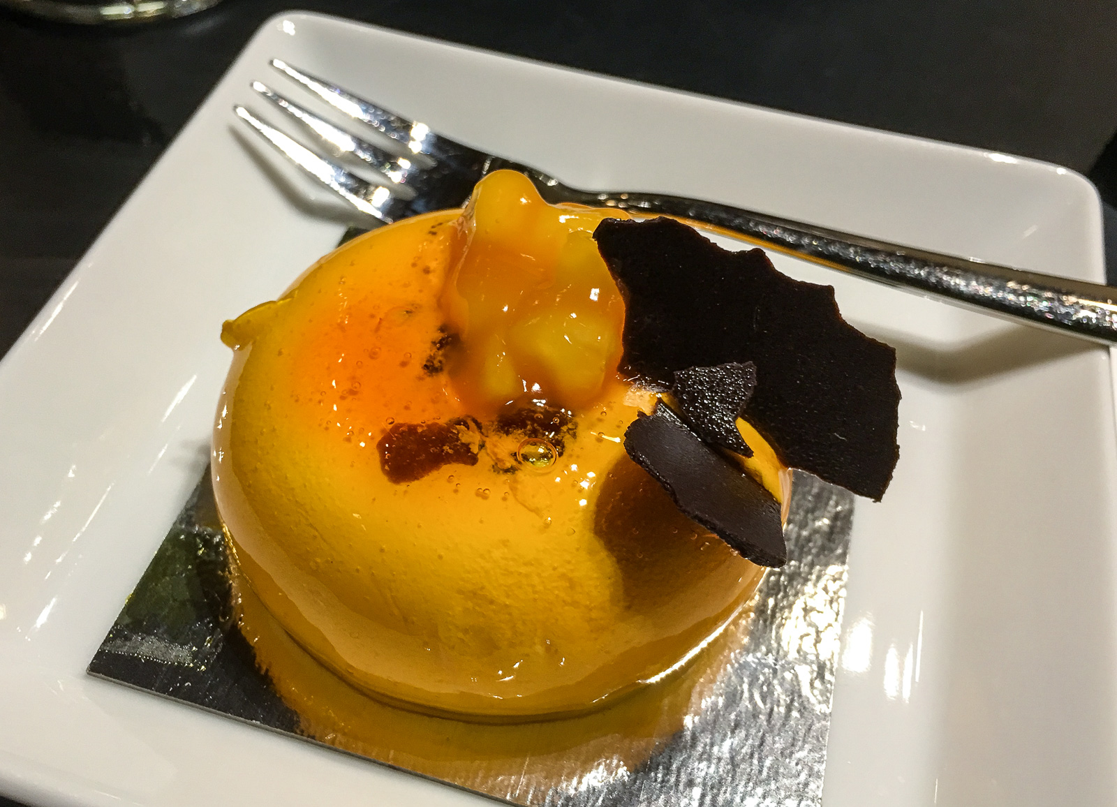 Väliajalla nautimme kuohuviiniä ja leivokset. Mangoleivos on taivaallisen hyvää, juuri sopivan kosteaa ja oikeasti mangolle maistuvaa. Onneksi (?) olimme tilanneet väliaikatarjoilut etukäteen, sillä ilman sitä tämä leivos olisi jäänyt kokematta: Gunnarin teatterimenun jälkeen meillä ei todellakaan ollut enää nälkä, mutta pakko mikä pakko, tällä kertaa pakko syödä vielä yksi leivos!