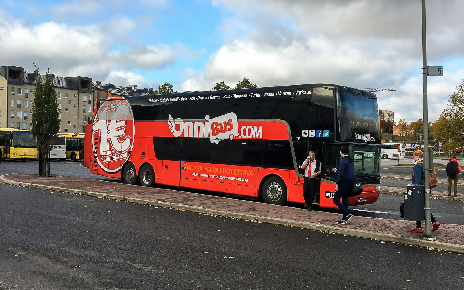 Poikkeuksellisesti kävimme Turussa bussilla, Onnibussilla! Olemme yleensä huonoja käyttämään julkista liikennettä välillä Iirislahti – Turku, koska se tarkoittaisi ensin matkaa Helsingin keskustaan bussilla ja metrolla ja palatessa sama juttu, mutta jossain vaiheessa olimme huomanneet, että Turkuun menevät Onnibusit pysähtyvät nykyisin myös Niittykummussa, pysäkillä, jonne ainakin hyvällä säällä voimme kävellä, joten päätimme kokeilla Onnibussia.