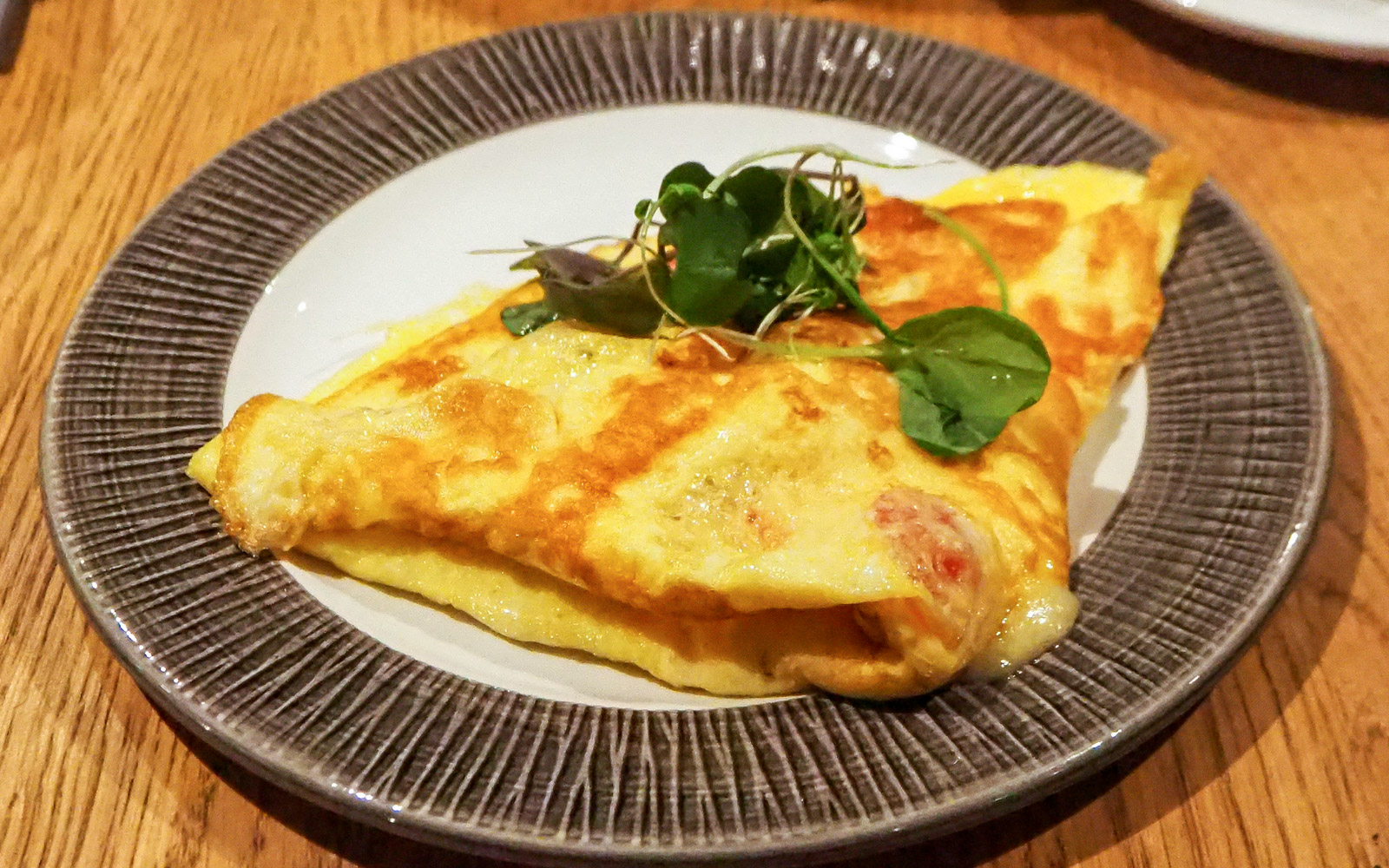 Aamiainen tarjoillaan hotellin toisessa kerroksessa. Perusversiossaan se on monipuolinen buffet, josta tuorepuuroa myöten löytynevät itse kunkin suosikit. Lisäksi on mahdollista ostaa 4,90 euron hintaan kokin tekemä lämmin annos, joista kokeilimme briossilohta ja omelettia – molemmat ihan hyviä. Buffetaamiaisen ja tarjoillun aamiaisen yhdistäminen oli ehkä hiukan haasteellista: pitäisikö nyt hakea jotain vai odottaa, mutta kyllä se jotenkin siitä lutviutui. Samoin kahvin ja teen tarjoilun osalta oli käytössä molemmat vaihtoehdot, pöytiintarjoilu ja hae ne itse, joka sekin teki kuviosta välillä vähän sekavan.
