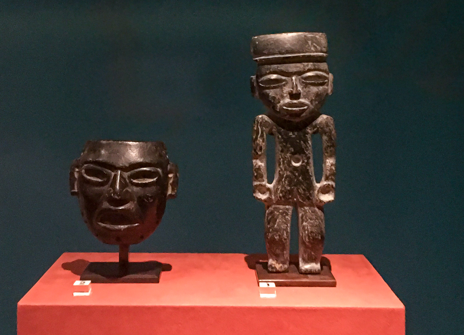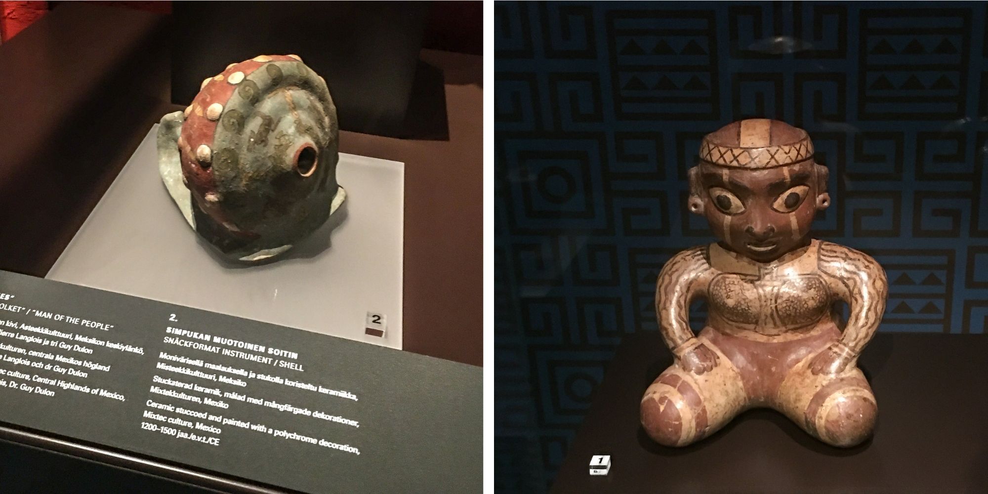 Arvoituksellisen otsikon taakse kätkeytyy näyttely, joka esittelee muinaisia Väli- ja Etelä-Amerikan kulttuureja neljän tuhannen vuoden ajalta vuosilta n. 2500 eaa. vuoteen 1500 jaa. Emme ehkä ole innokkaimpia historian harrastajia, mutta tilanteessa, jossa olemme juuri (marraskuussa) suuntaamassa Väli-Amerikkaan, ajatus Väli-Amerikasta jo Helsingissä tuntui hyvältä idealta.