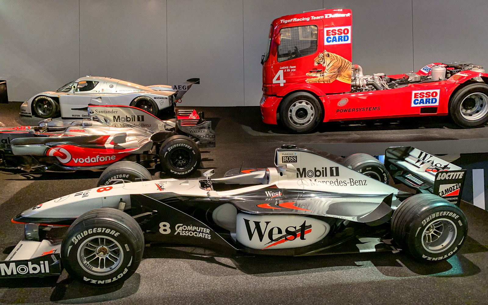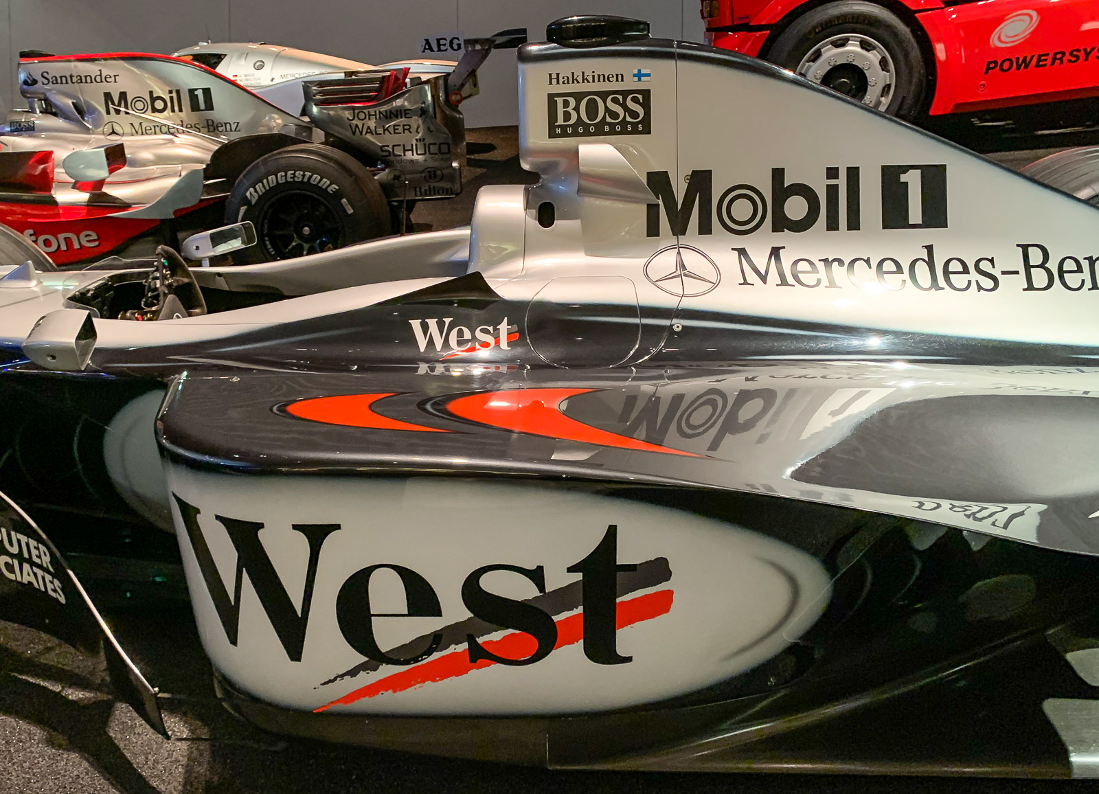 Varsinaisen näyttelyn viimeinen huone suuntaa tulevaisuuteen ja esillä onkin muutama sähköauto, mutta ei näyttely vielä siihenkään lopu, jäljellä on vielä auto-urheilu! Suomalaisena on tietysti pakko pysähtyä hetkeksi Mika Häkkisen auton luo.