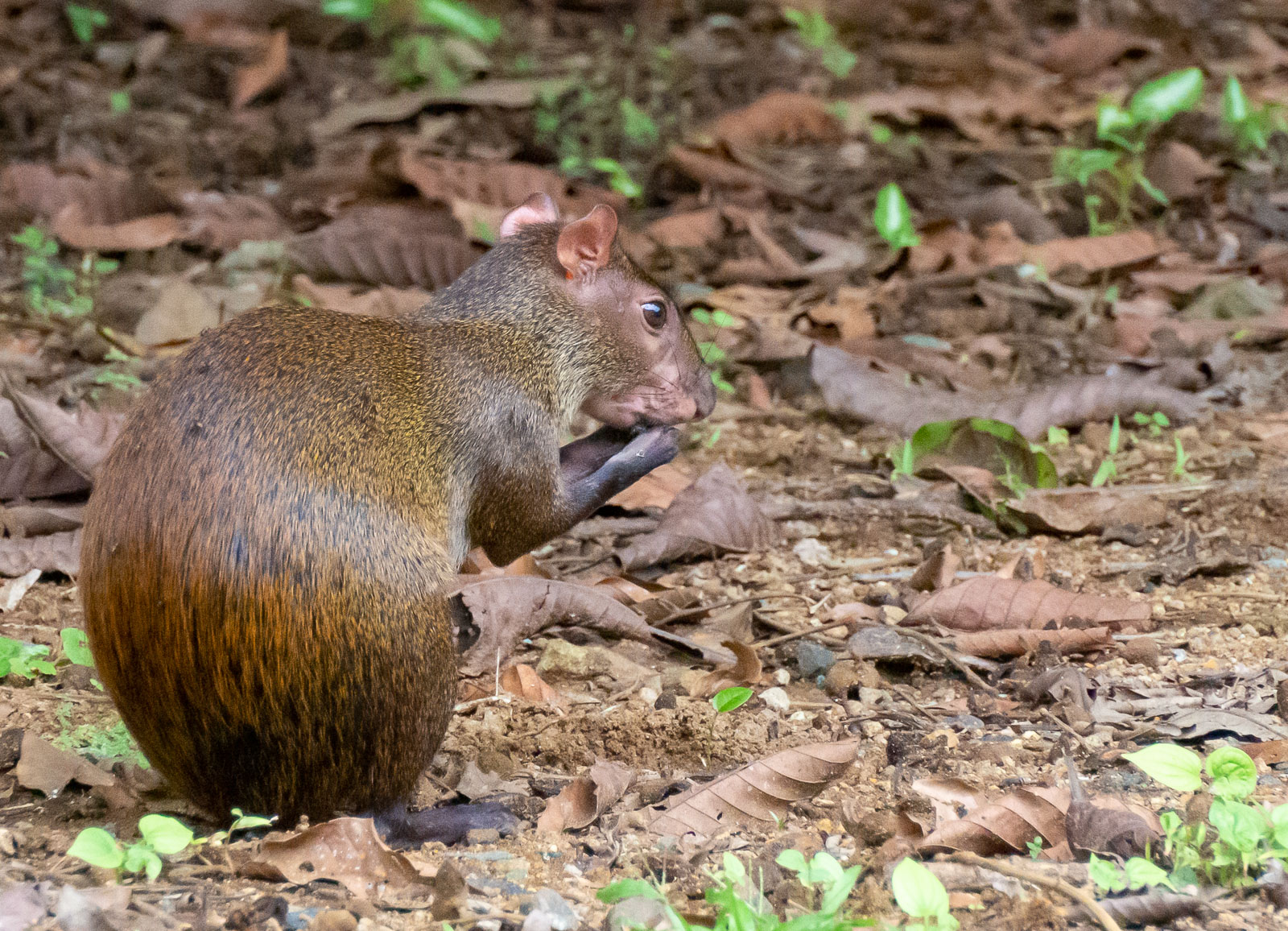 Gamboa Rainforest Resortin välittömässä läheisyydessä on pienen kylän verran siirtomaa-aikaisia puisia rakennuksia, joista osa lienee nyttemmin tyhjillään, osa ehkä kesämökkityyppisessä käytössä, mutta alue on kuitenkin hiljaisen puoleinen, joten kun yhtenä iltapäivänä kävelimme alueella, niin näimme useammankin kultajäniksen (Väli-Amerikan agutin). Ihan veikeän näköisiä otuksia, joita näimme myöhemmin myös Costa Ricassa.
