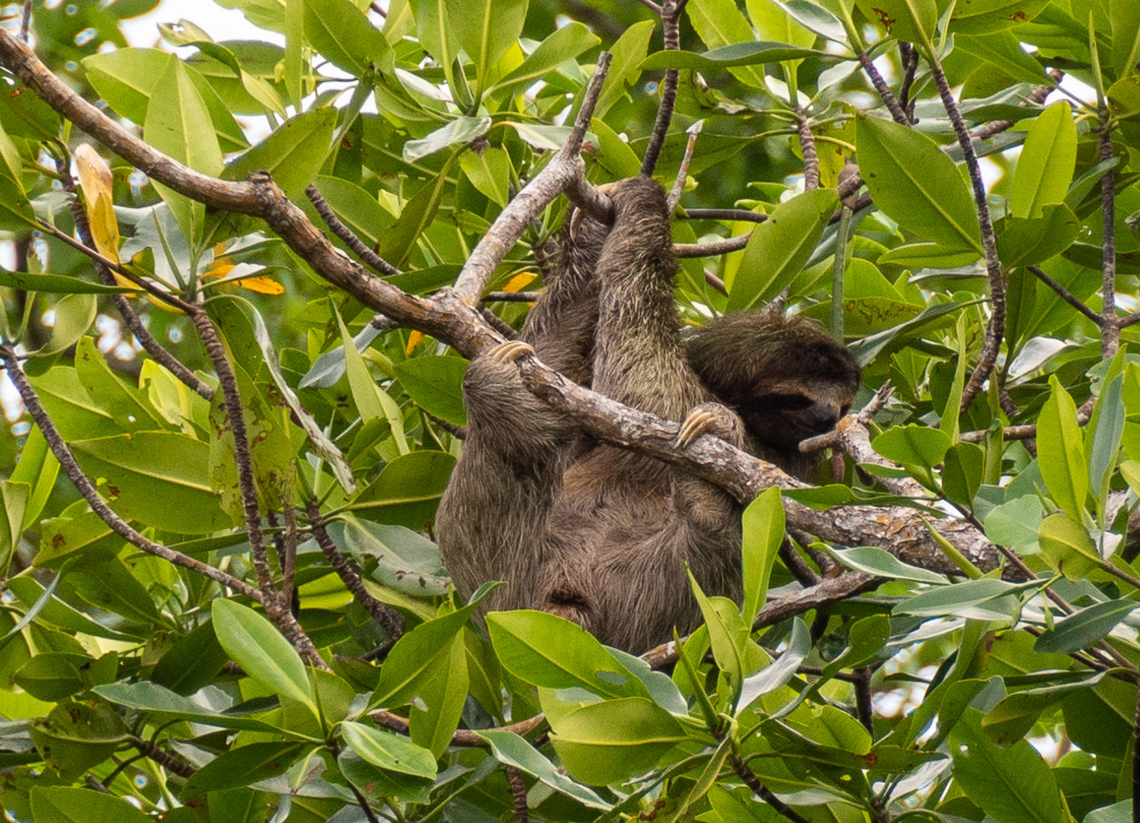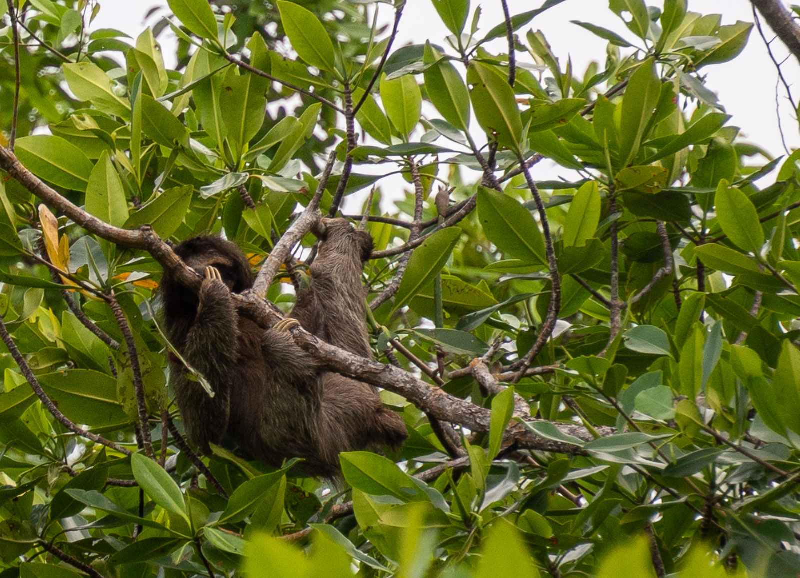 Itse Bocas de Toron kylään emme niinkään paneutuneet yhtä keskustassa nautittua illallista lukuunottamatta, mutta teimme pitkän päiväretkin lähivesille ja -saariin. Retken kohteista ehdottomasti paras oli Laiskiaissaari (Sloth Island). Siellä ne roikkuivat, puiden latvoissa, laiskoina, laiskiaiset! Emme olleet aikaisemmin nähneet laiskiaisina oikeasti missään, joten katselimme ja kuvasimme niitä todella innostuneesti. Kuten apinatkin, laiskiaiset oleilivat melko korkealla puissa, joten pitkä objektiivi oli täälläkin tarpeen. Tarpeen oli myös paikallisoppaamme, sillä laiskiaisten näkeminen puiden latvoissa vaati selvästikin harjaantuneen silmän.