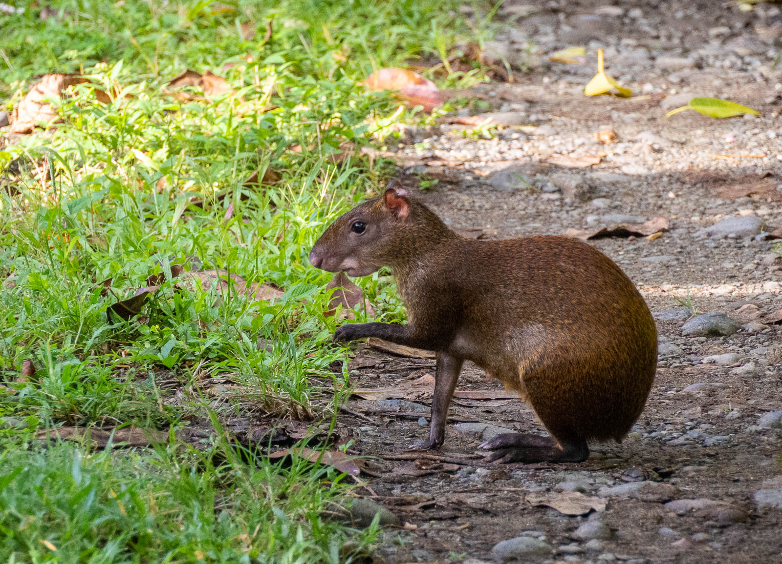 Hotellialue tarjosi palan helposti lähestyttävää sademetsää. No ehkä olisi oikeampaa kutsua sitä puistoksi kuin sademetsäksi, mutta niin vaan polkuja ristiin rastiin kulkiessamme näimme Costa Rican matkamme ensimmäiset pienet värikkäät sammakot, lisää laiskiaisia ja kultajäniksiä.
