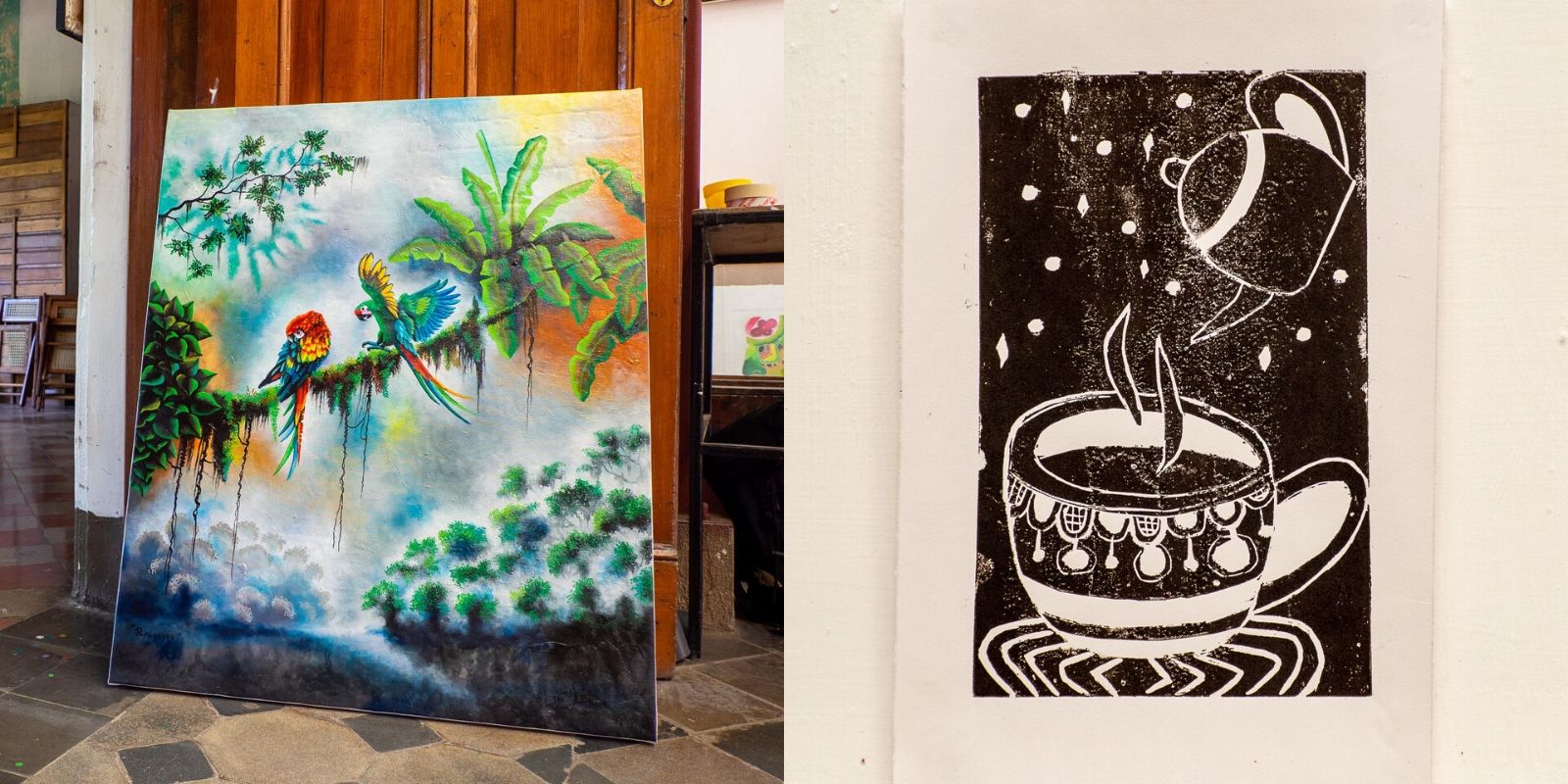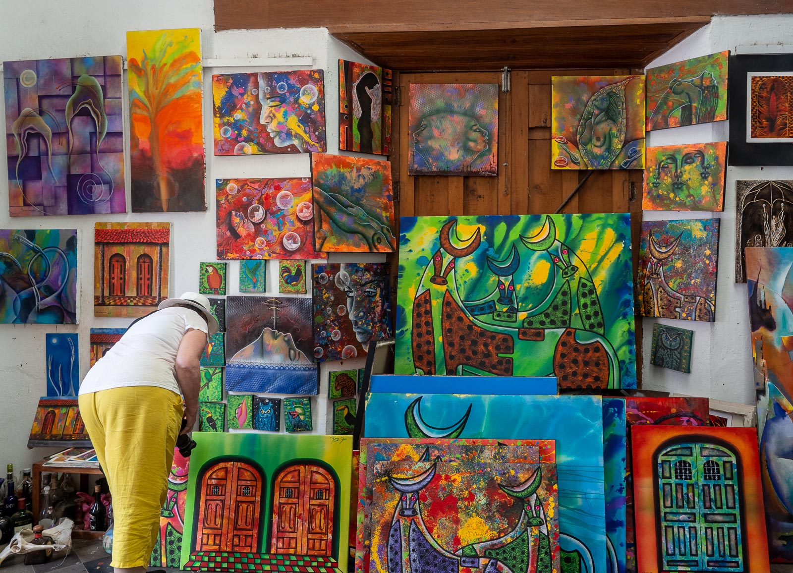 Aloitamme kaupunkikierroksen paikallisella taiteella, jota on nähtävissä niin Kulttuuritalossa kuin taiteilijoille työtilojakin tarjoavassa Casa de Los Tres Mundos -talossa. Jotkut töistä ovat kiinnostavia, mutta hankinnat jäävät tekemättä, sillä edessä on vielä monen monta pysähdystä ja edes rullalle käärityn teoksen varjeleminen maasta ja kaupungista toiseen olisi aivan liian työlästä.