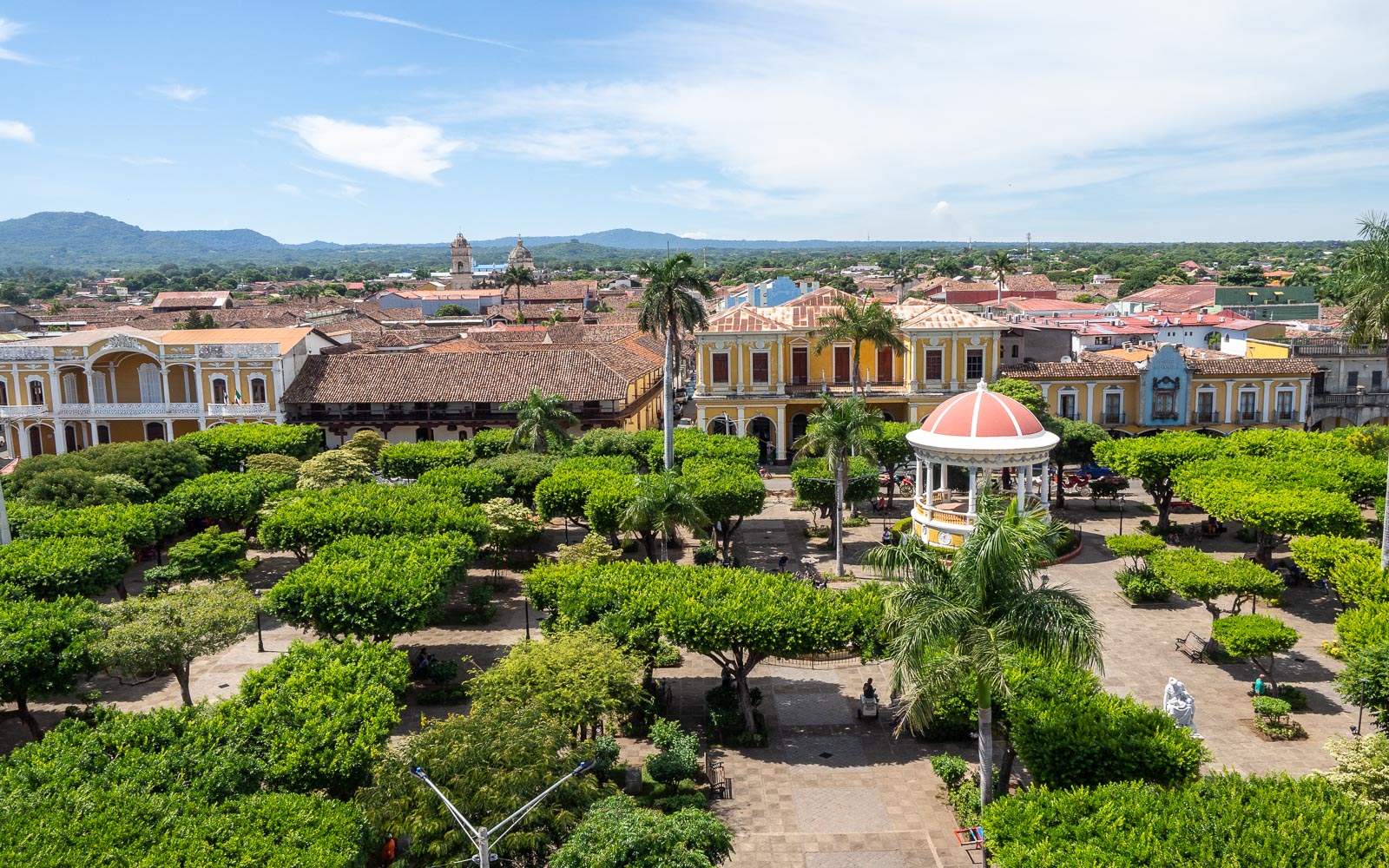 Palaamme keskusaukiolle ja sen reunalla sijaitsevalla katedraalille helteessä hitaasti kävellen. Hevoskärryt kuljettavat niin ihmisiä kuin tavaroitakin – tunnelmassa on jotain samaa kuin Kuuban Trinidadissa. Katedraali tarjoaa hienot näköalat Granadan kaupunkiin kahdelta terassiltaan, joten sinne kannattaa kiivetä, pienessä helteessäkin.