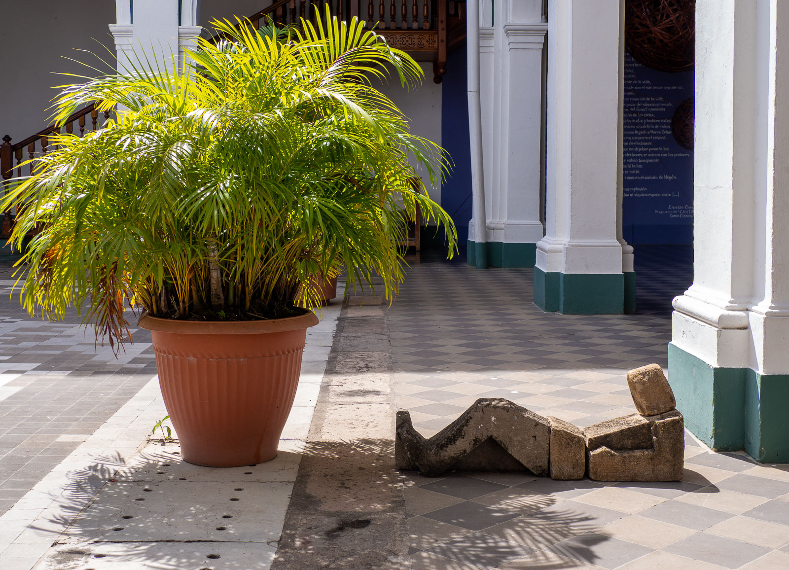 Granadassa asumme kaupungin keskusaukion liepeillä. Hotelli, Colonial, omaa historiallista charmia, mutta jotkut nykyajan jutut, kuten vaikka toimiva kassakaappi tai toimiva parvekkeen oven lukitsemismekanismi saattavat olla hakusessa. Hisseistä nyt puhumattakaan – tosin ne olivat harvinaisia kaikissa Keski-Amerikan kiertomatkamme hotelleissa. Päädymme lopulta pieneen huoneeseen sisäpihan reunalle, ensimmäiseen kerrokseen. Kyllä tässä muutaman päivän asuu.