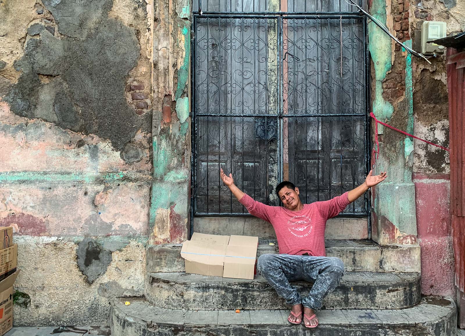 Palaamme keskustaan, Calle la Calzadan sivukadulle, etsimään ravintolaa, jonka tarkistimme jo aikaisemmin, ja hiljaisen kadun reunalla oleilevat muutamat paikalliset huutelevat meille tervehdyksiään, asettuvat jopa kuvattaviksi. Ravintolassa, El Corralissa, olemme alkuillasta ainoat asiakkaat, mutta se johtunee pitkälti valitsemastamme ajankohdasta – kyllä Granadassa sentään muutamia turisteja on. Kun myöhemmin kävelemme takaisin keskusaukiolle ja hotellille, niin pääkadulla ja keskusaukiolla on jo lähes ruuhkaista. Musiikki soi, välillä vaimeammin, välillä äänekkäämmin pimenevässä, ja kohta jo pimeässä illassa.