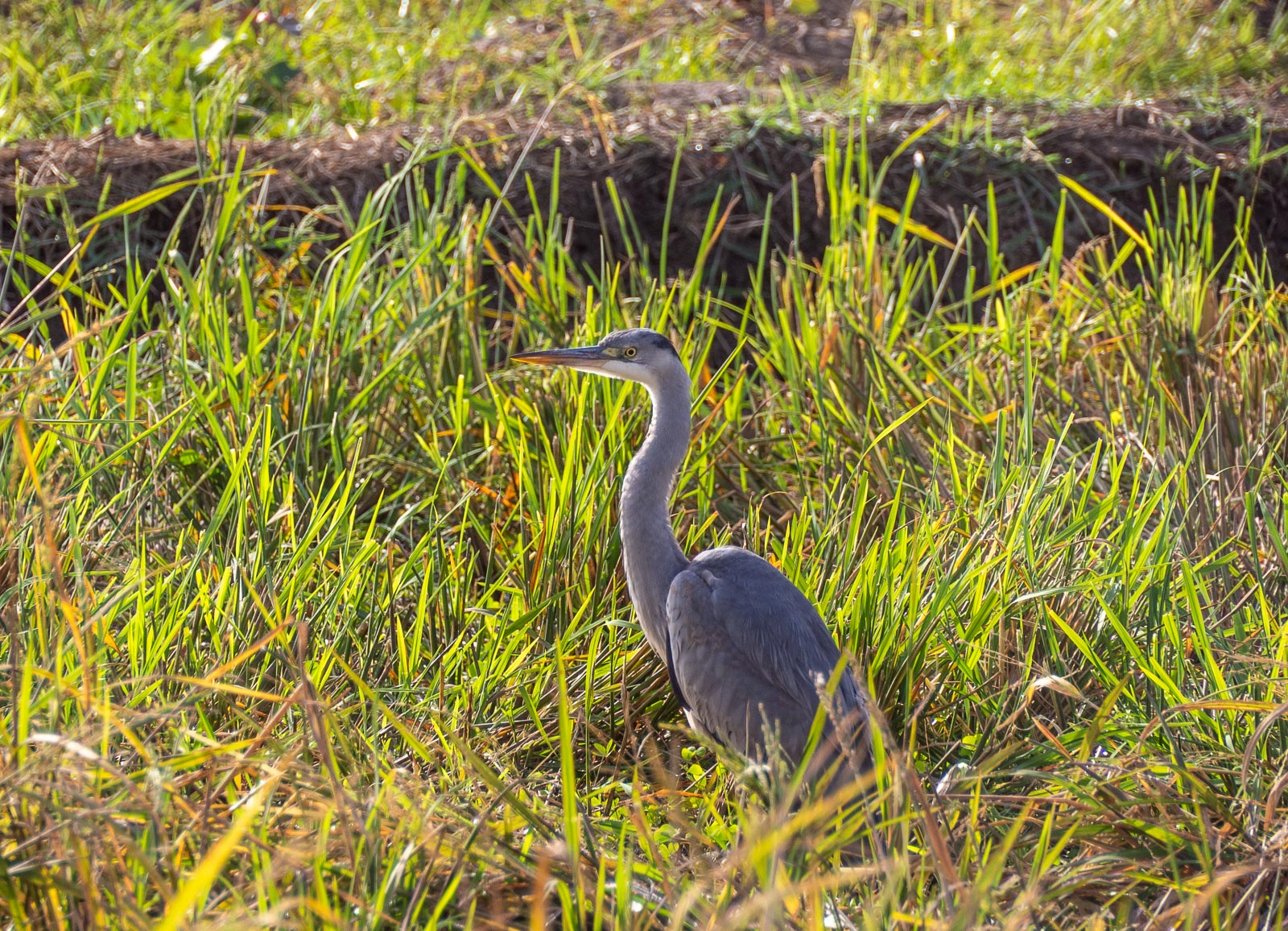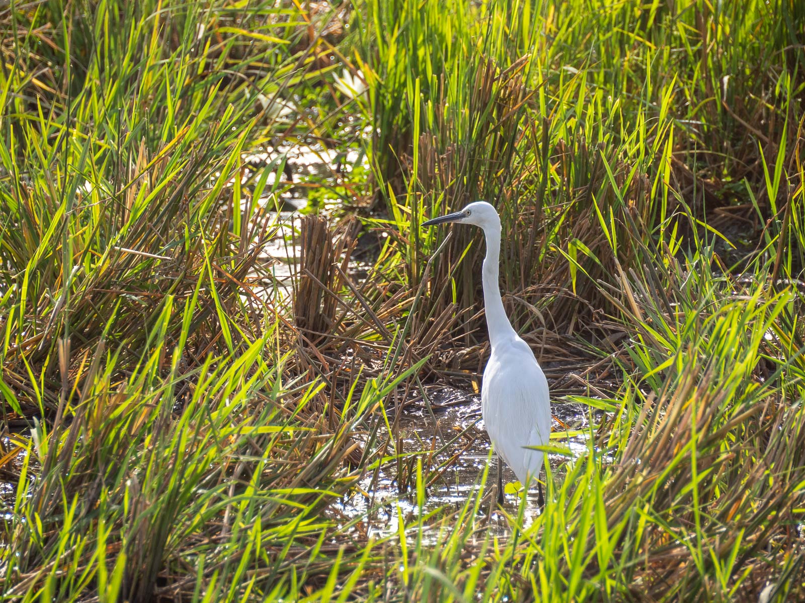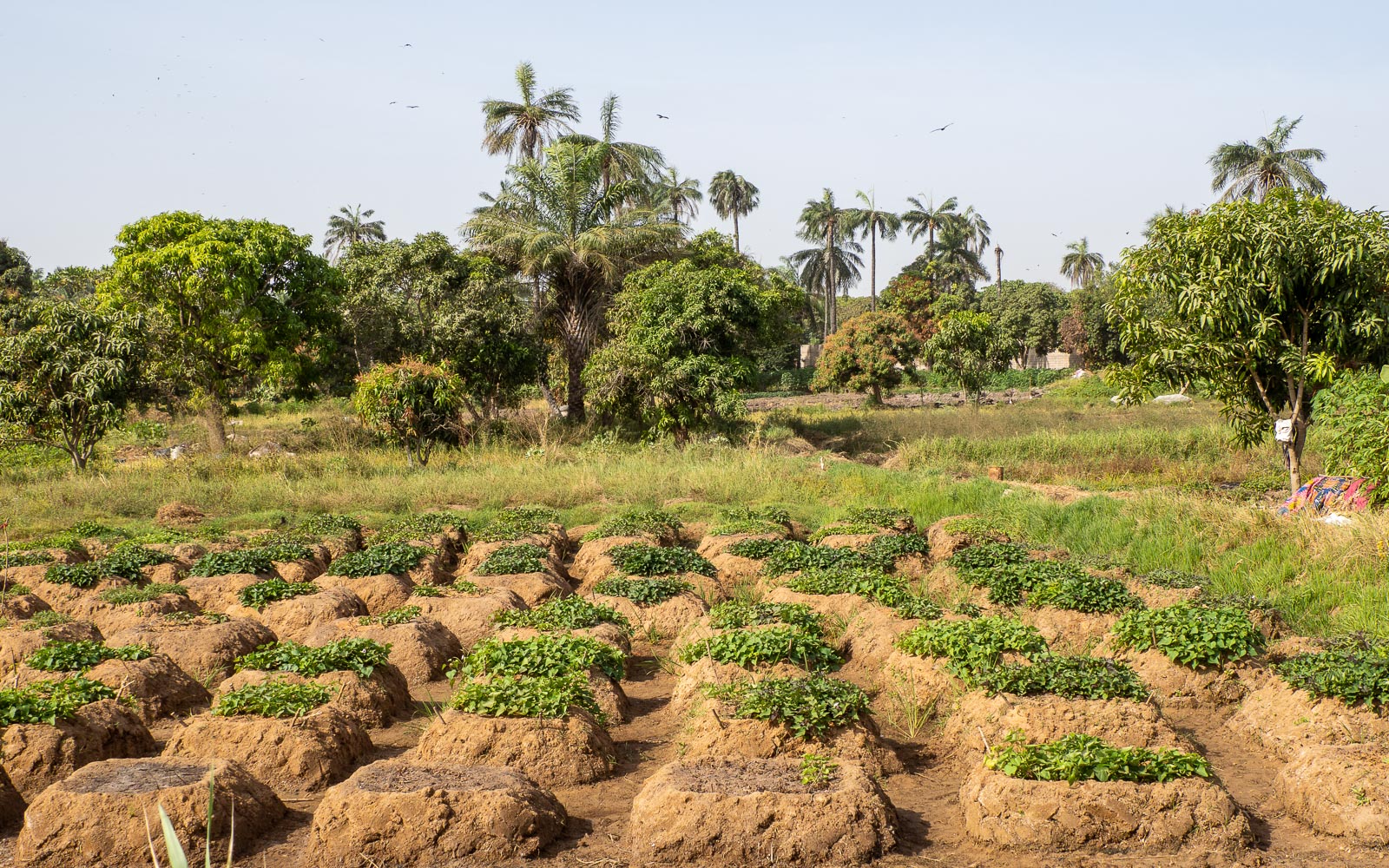 Lintuja oli kiva etsiä niin katseella kuin kiikarilla ja kameralla, mutta parasta oli ehkä sittenkin riisipelloilla vallitseva rauhallinen kesäinen tunnelma. Olimme juuri ajaneet elämää ja ihmisiä kuhisevien Serrekundan markkinakatujen kautta, mutta täällä ei ollut vilinästä jälkeäkään. Muutama ihminen ohitti meidät silloin tällöin pellon reunalla jotain asiaa viljelyksillä toimittaessaan, mutta muuten oli ihan hiljaista.