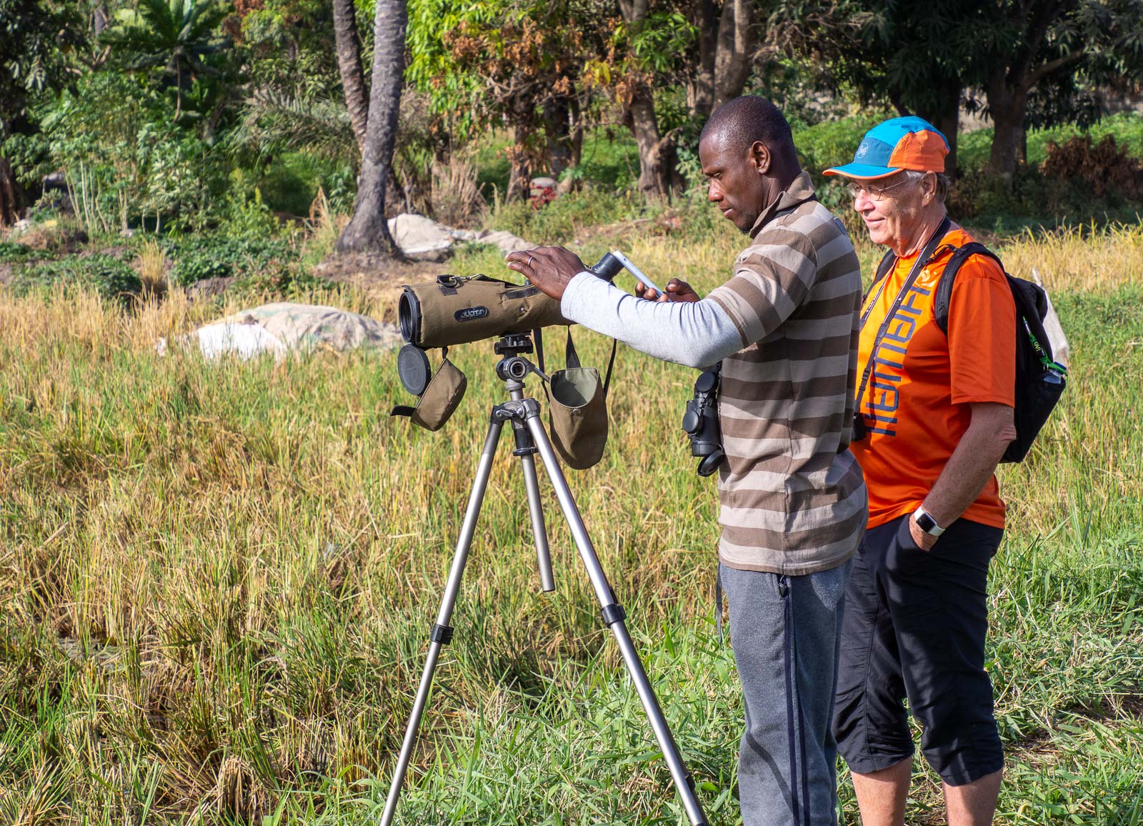 Abukossa näimme myös meitä paljon vakavammin lintuihin suhtautuvia alan harrastajia ja oppaamme kertoikin, että Gambiaan tulee paljon turisteja pelkästään lintujen takia. Kahdenkin viikon matkalla he saattavat käydä linturetkillä joka päivä, niin näillä alueilla kuin usemman päivän retkillä Gambiajoella mm. Janjanburehin (entiseltä nimeltään Georgetown) läheisyydessä.