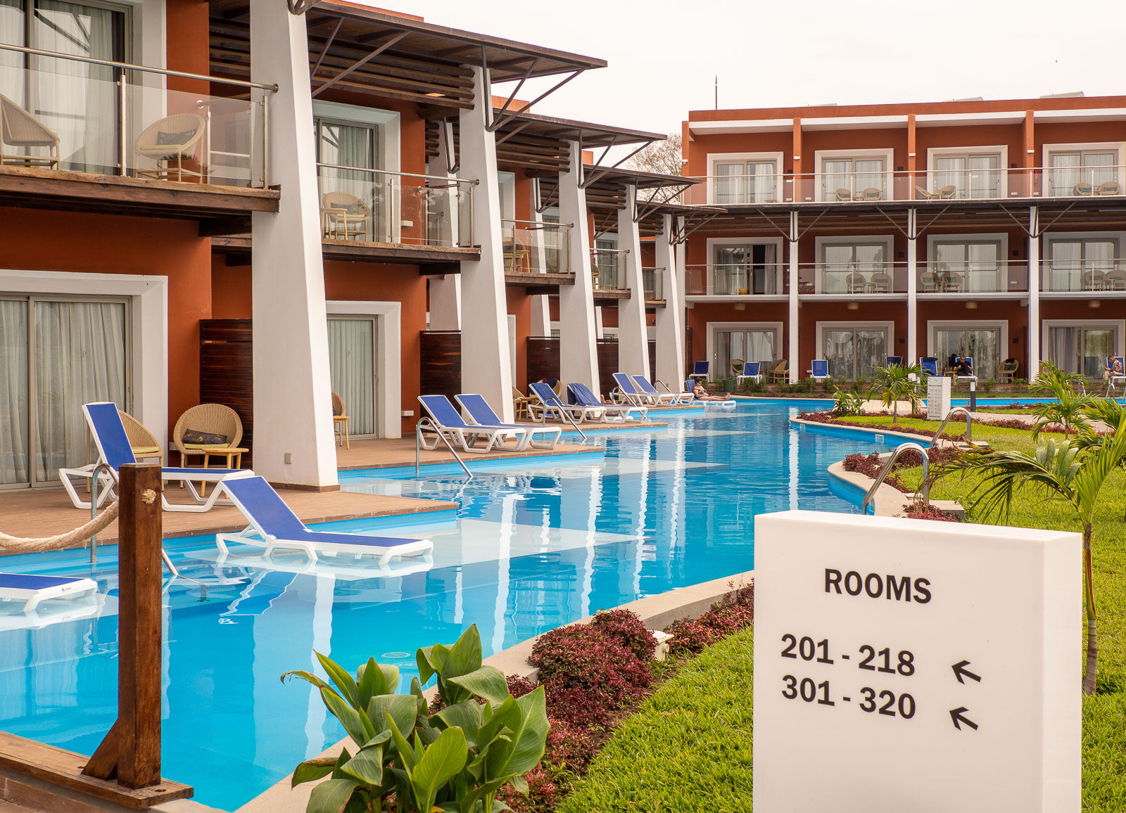 Matkustimme Gambiaan Sunclass Airlinesin siivin, eli Tjäreborgin seuramatkalla. Hotellivalintamme osui African Princess Beach -hotelliin, koska hotelli oli uusi, rannalla ja se tarjosi myös swim-up -huoneita, joita emme koskaan ennen olleet kokeilleet, mutta tällä hintatasolla ajattelimme, että nyt jos koskaan.