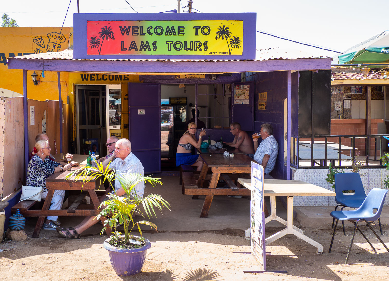 Pidimme paitsi hotellista myös sen sijainnista. Hotellillemme johtavalla kadulla oli useampiakin ravintoloita, muttei kuitenkaan siinä määrin ihmisiä ja hälinää kuin Senegambia-hotellin edustalla – ja se oli rannalla.