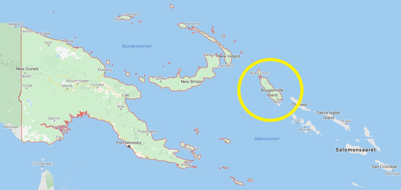 Bougainvillen saari on siis tätä nykyä osa Papua-Uusi-Guineaa.