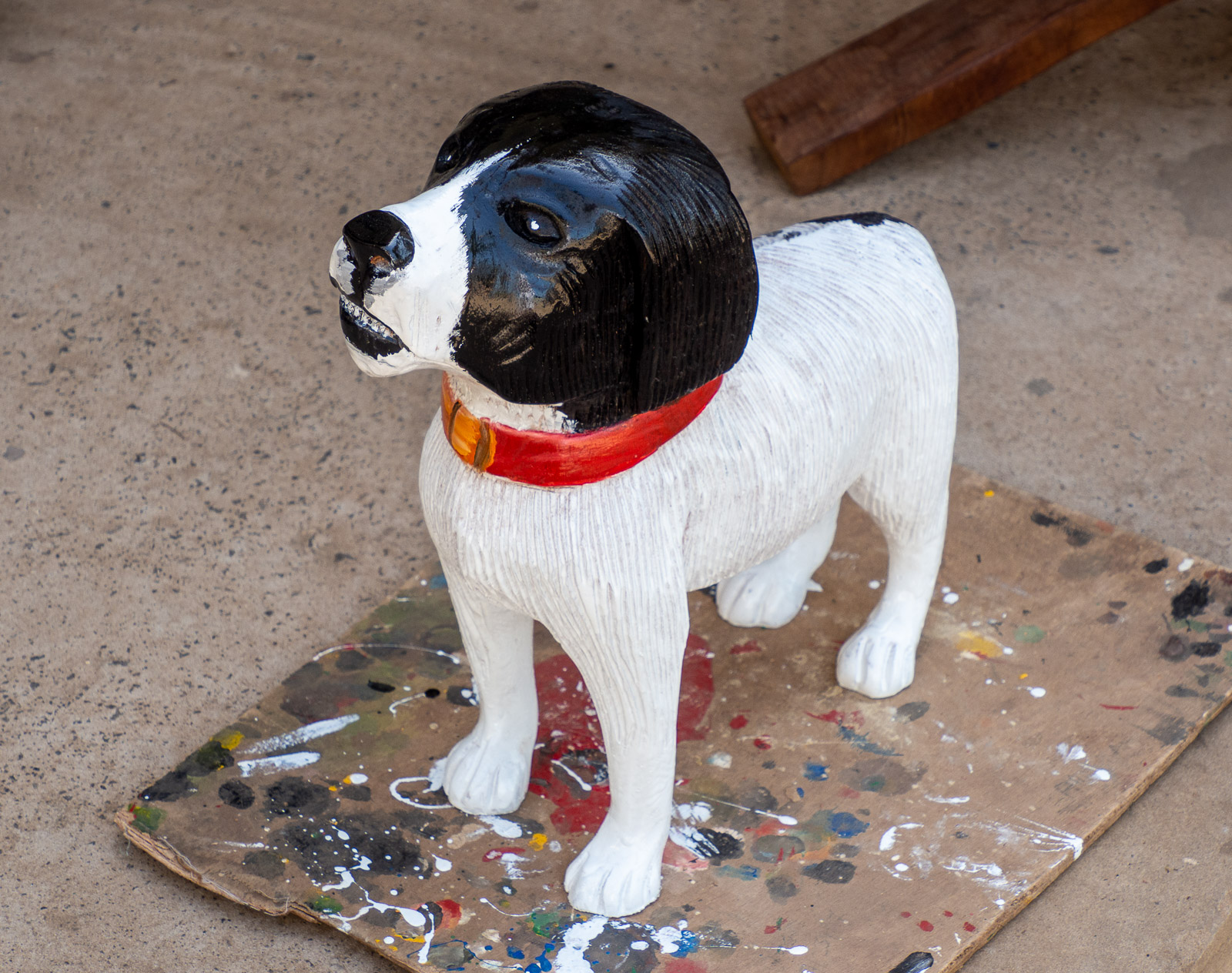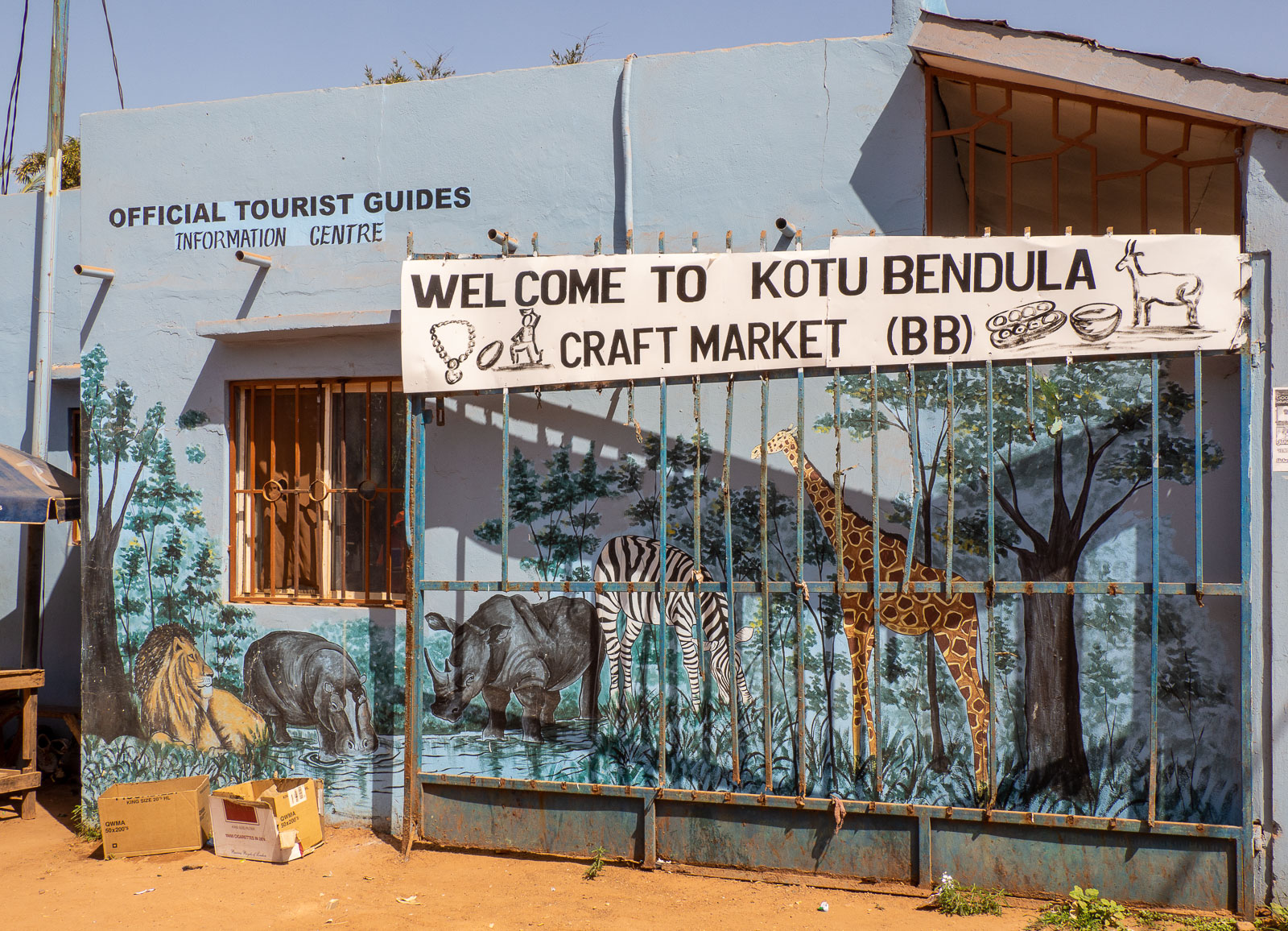 Kotun käsityömarkkinoillekin löysimme ystävällisten paikallisten omastamana. Markkinat olivat, sanoisinko, kivan pienet, mutta ne tarjosivat kuitenkin hyvän käsityksen siitä, että minkälaisia asioita Gambiassa ainakin on turisteille tarjolla. Puuveistokset olivat ehkä vakuuttavimmasta päästä ja ihastellessani yhtä värikästä koiraa ja todetessani sitten, että se on liian iso kuljetettavaksi, niin tekijä tarjoutui heti tekemään juuri sen kokoisen kuin haluaisin. Mutta olimme markkinoilla matkamme viimeisenä aamuna, joten jäi nyt koirista pitävältä kummitytöltä puukoira sittenkin saamatta …
