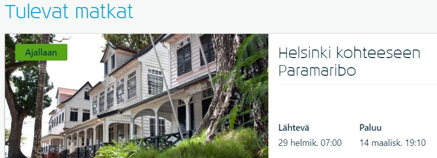 - nyt Amsterdamin kautta Paramariboon ja sitten lopulta takaisin Arubalta samoin Amsterdamin kautta
