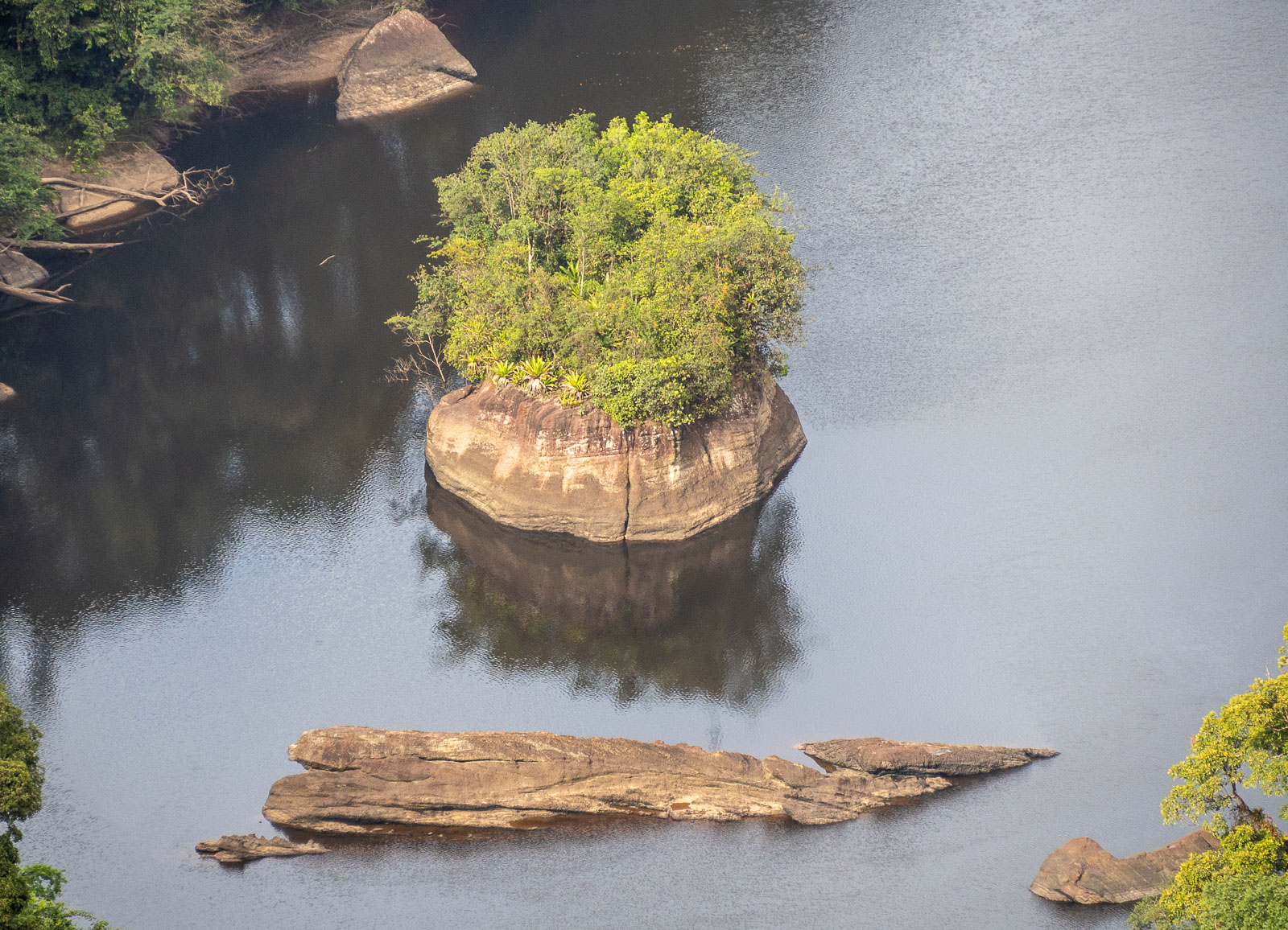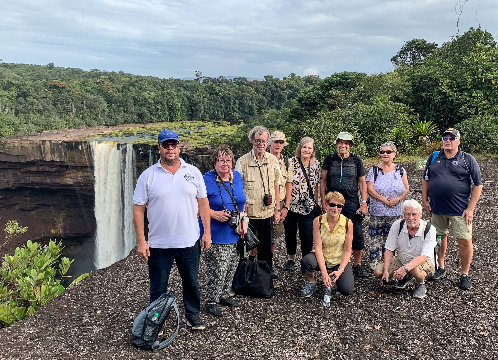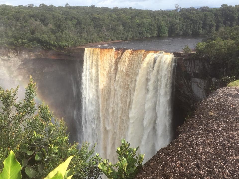 Lyhyen lennon ollessa lopuillaan lentäjä laskeutui vähän alemmas ja vinkkasi katsomaan ikkunoista aukeavaa näkymää – siinä se oli, Kaieteurin putous! Lensimme sen yli pariinkin kertaan siten, että putouksen saattoi nähdä koneen kummaltakin puolelta. Muutaman valokuvankin saimme napattua koneen ikkunoista ja ystävämme Jari sai kuvattua aika hienon videonkin ylilennosta.