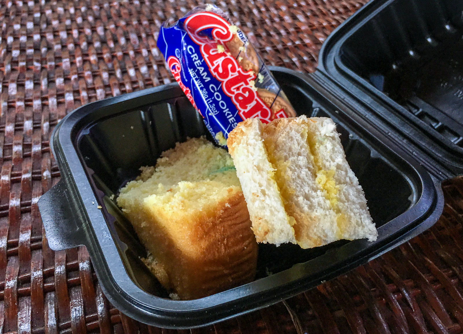 Luontokeskukseen palatessamme lentäjällä oli meille yllätys. Etukäteen olimme saaneet ohjeet varata hiukan jotain ruokaa ja juomaa mukaan, sillä luonnonpuistossa ei ole kahvilaa tai ravintolaa ja niin olimmekin tehneet parin proteiinipatukan ja vesipullon verran. Koneen uumenista oli kuitenkin “löytynyt” laatikollinen eväspaketteja ja mahdollisista mukana olleista eväistä huolimatta voileivät, kakunpalat ja mehutetran tekivät hyvin kauppansa.