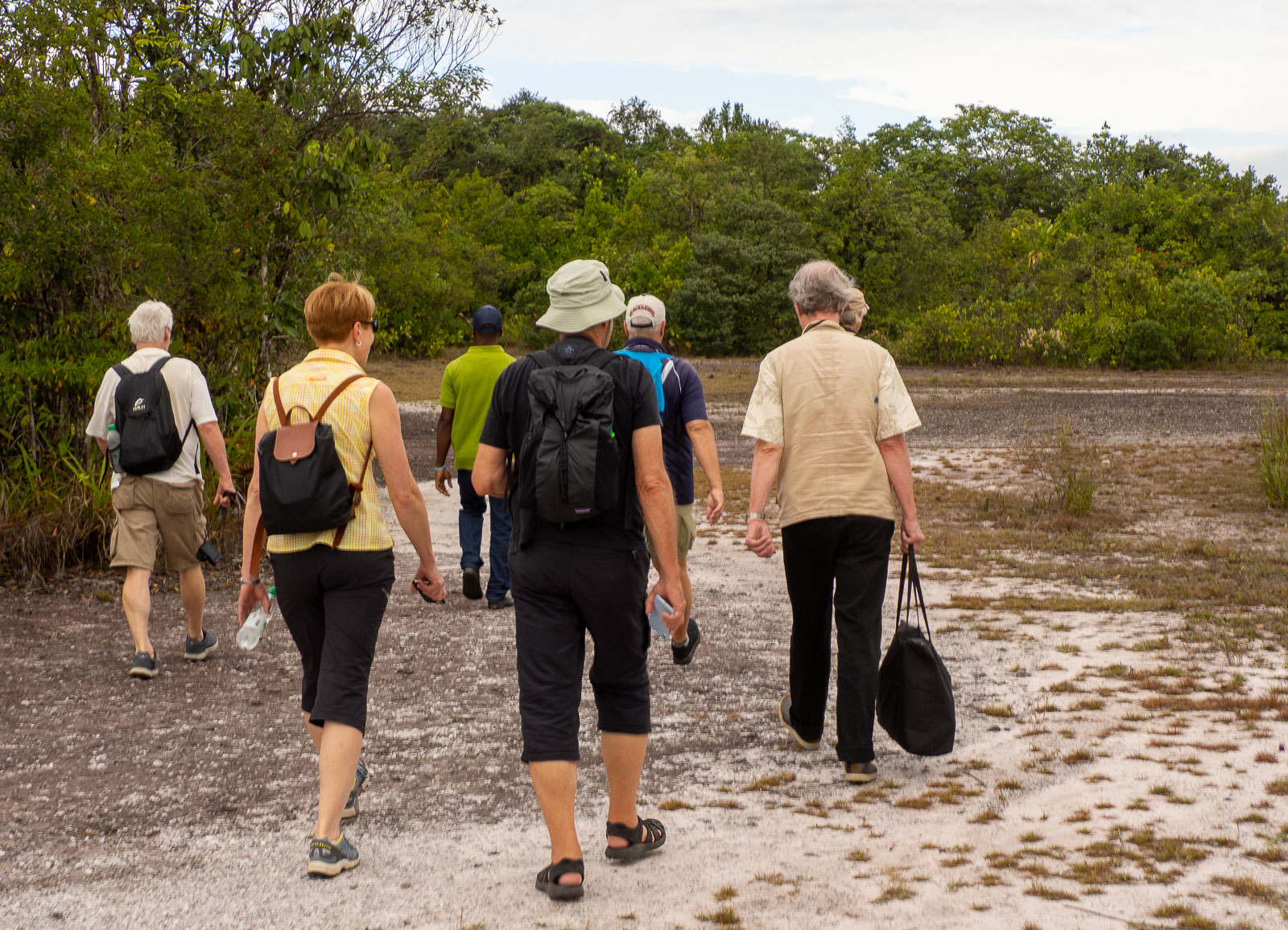 Polut Kaieteurin luonnonpuistossa olivat helppokulkuisia – siis näille muutamalle näköalapaikalle vievät polut. Puistoon olisi myös voinut tehdä useamman päivän vaellusretkiä, joiden aikana olisi laskeuduttu myös alas joenuoman reunalle ja takaisin ylös, mutta tällä kertaa siis näin, kesysti.