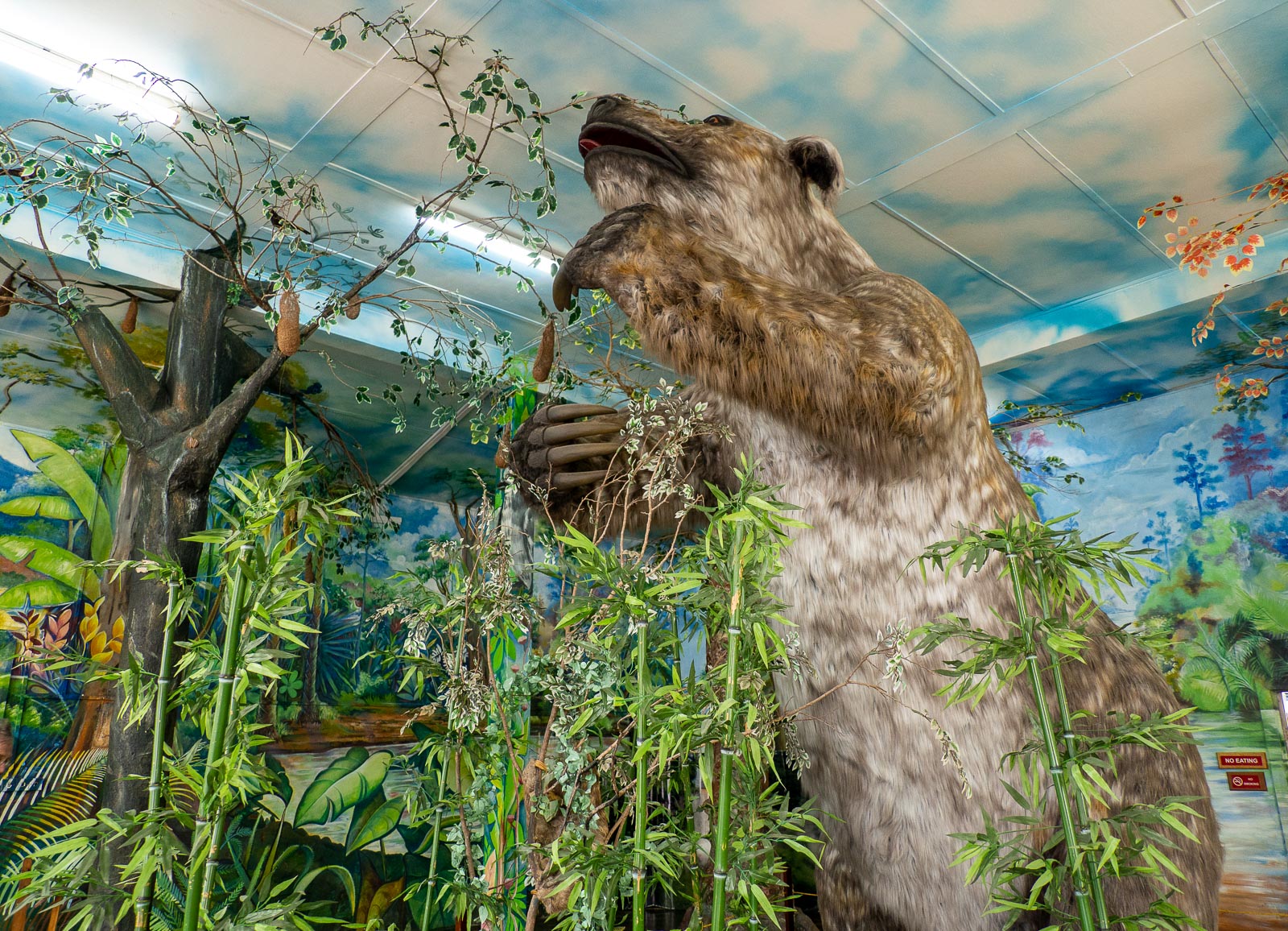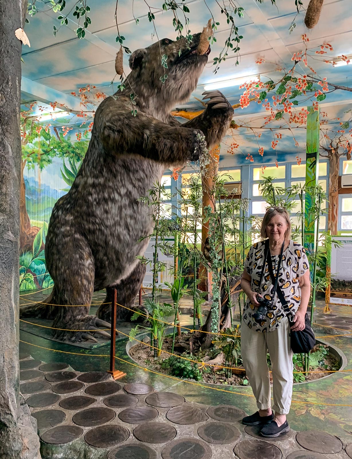 Varsinainen yllätys löytyi kuitenkin museon alakerrasta. Jättiläislaiskiainen! Ensimmäinen reaktioni oli, että ei tämä voi olla totta – tämän täytyy olla joku lasten huvittamiseksi/pelottamiseksi tehty oikeannäköinen eläin. Mutta ilmeisesti jättiläislaiskiainen on ihan totta. Sen luut löydettiin Oko Creek Cuyuni -joelta (keskeltä Guyanan sademetsää) 1999 ja museon replika luotiin fossiilijäännösten perusteella. Etelä-Amerikan sademetsissä ilmeisesti joskus on elänyt tällaisia 5 metriä korkeita norsun kokoisia laiskiaisia!
