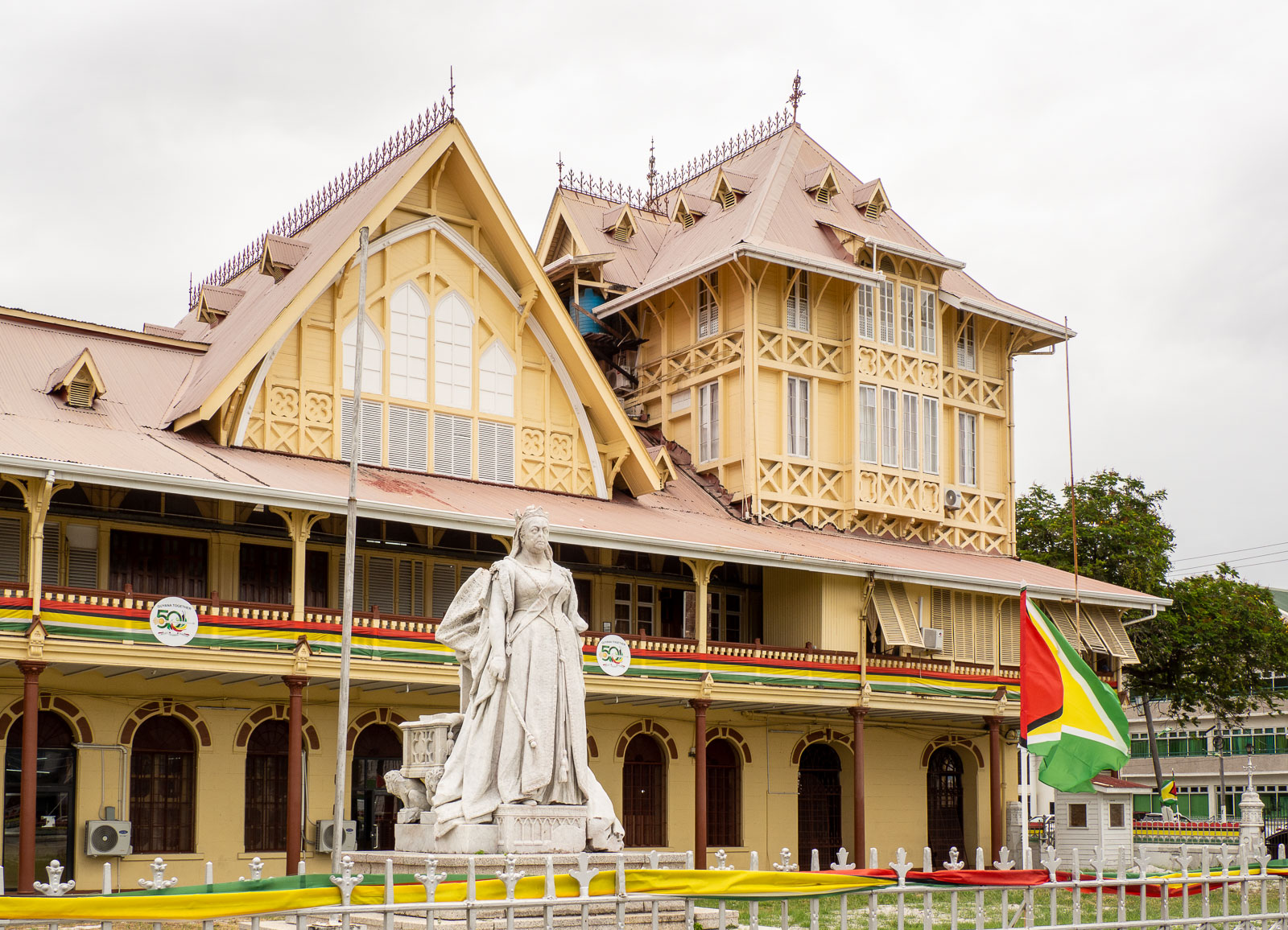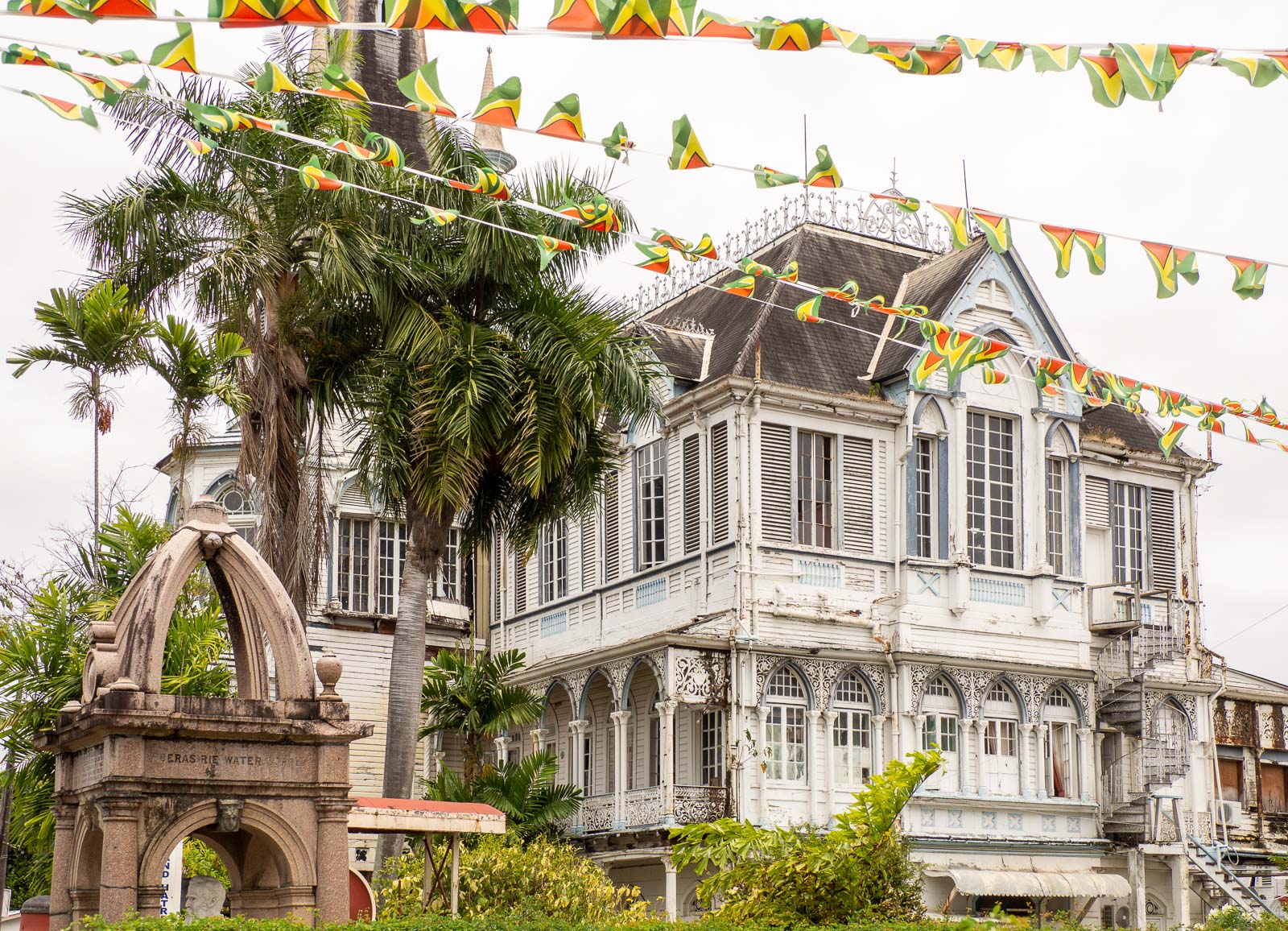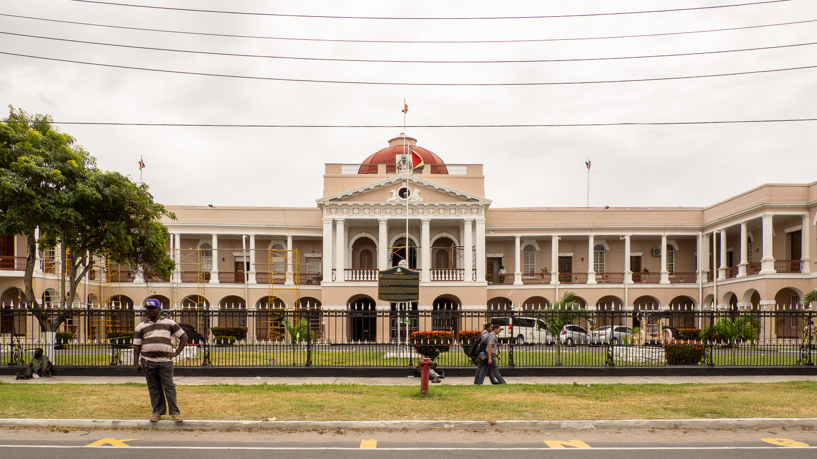 Julkisista rakennuksista etenkin vaalien takia hiukan levottomassa Guyanassa mielenkiintoisimpia olivat pääministerin virka-asunto ja oikeustalo. Nämä, kuten monet muutkin Georgetownin rakennuksista, olivat myös rakennuksina mielenkiintoisia – eivät vaan siksi, että kaupungissa vallitseva jännitys jotenkin tiivistyi näiden edustalla. Pääministerin virka-asunnon edustan katu oli suljettu ajoneuvoliikenteeltä, sillä vaalilaskentatoimisto sijaitsi samalla kadulla ja oikeustalo puolestaan vilahteli uutisissa useana päivänä sen myötä, että oppositio nosti vaaleista oikeusjutun.