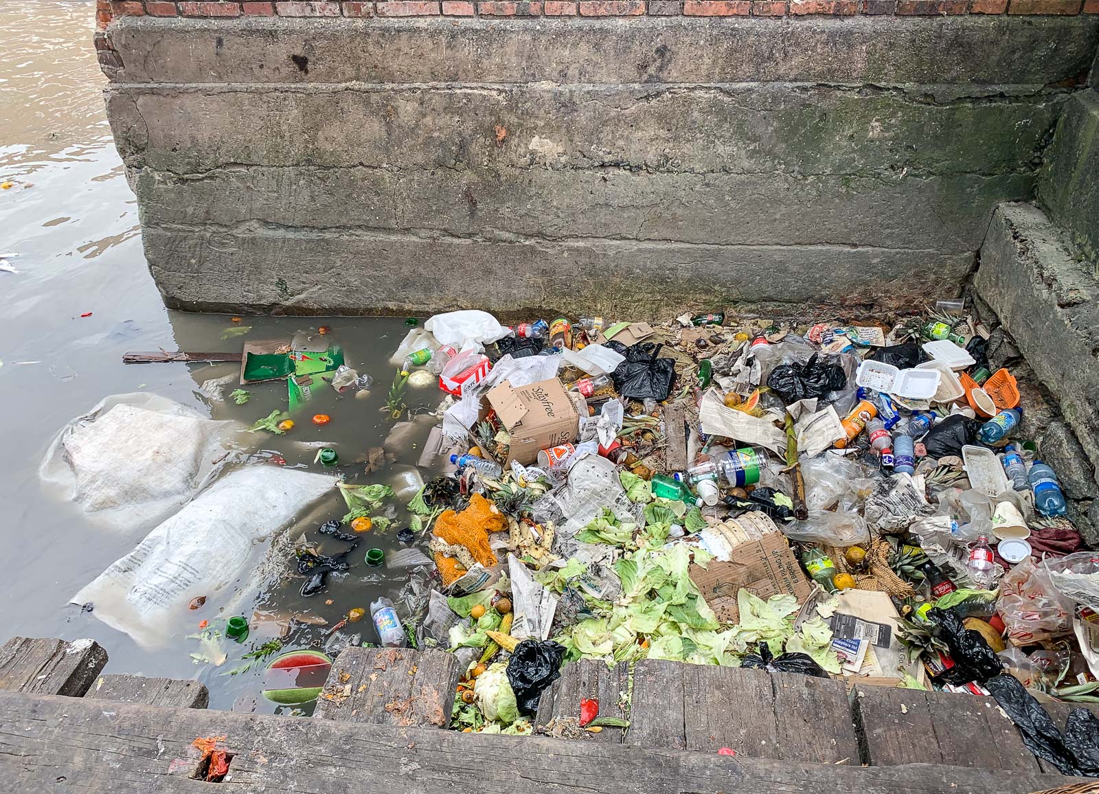 Parin kadunkulman jälkeen tulimme vähän vilkkaammalle alueelle, jossa oli hedelmiä ja vihanneksia myyviä pieniä kojuja ja ihmisiä liikkeellä selvästi enemmän kuin hotellimme kulmilla. Läheisen kanavan rannalla oli pieniä taloja, jotka vehreän kanavan laidalla näyttivät tavallaan idyllisiltä, kodikkailtakin, vaikka ne olivatkin pieniä ja vaatimattomia. Tässä vaiheessa ensimmäinen paikallinen varoitti meitä, että meidän ei kannattaisi liikkua täällä, ehkä olisi parempi palata hotellille. Jatkoimme kuitenkin eteenpäin ajatuksena kääntyä vaikka seuraavasta kulmasta ja kiertää sitä kautta takaisin hotellille sen sijaan, että palaisimme omia jälkiämme. Kulmassa meitä lähestyi nuori pari, joka myös varoitti meitä ja kehotti ainakin laittamaan kameran piiloon. Ymmärsimme, että oli aika palata hotellille. Iltapäiväretkemme jäi muutaman korttelin mittaiseksi, mutta ei se mitään, ylimääräisestä lisäretkestähän olikin kyse.