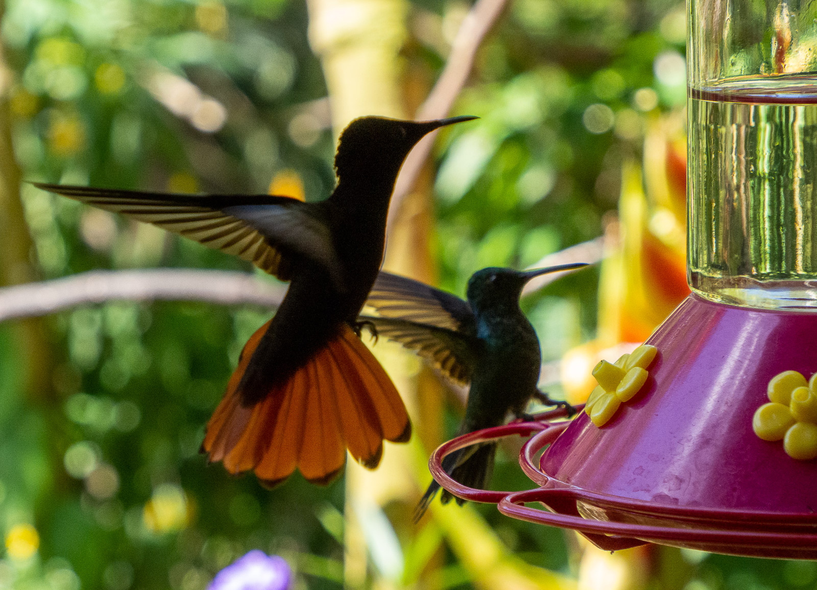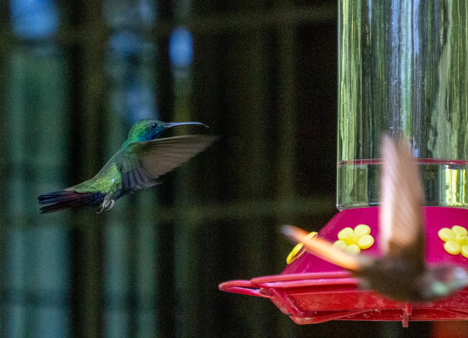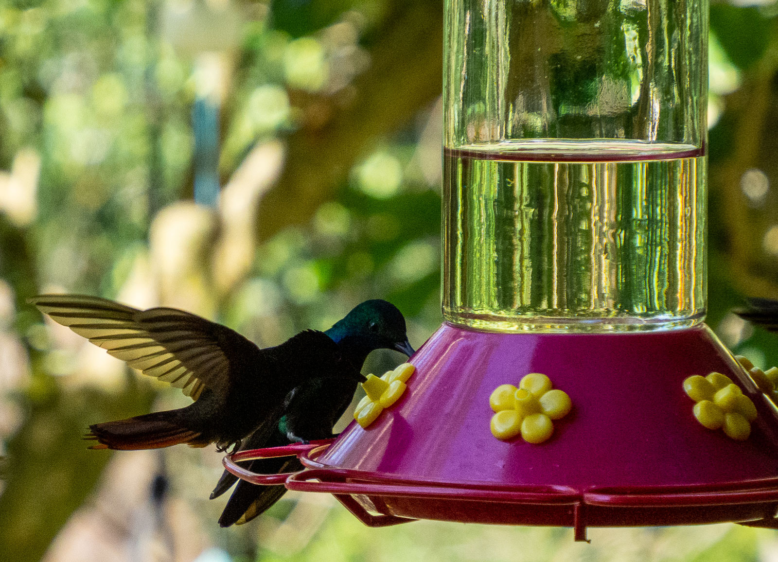 Edellisen kerran yritimme kolibrien kuvaamista Roatanin saarella Hondurasissa – silloin kuviin tarttui vaan kolibreille tarkoitettuja lintulautoja, eli pientä kehitystä on tapahtunut!