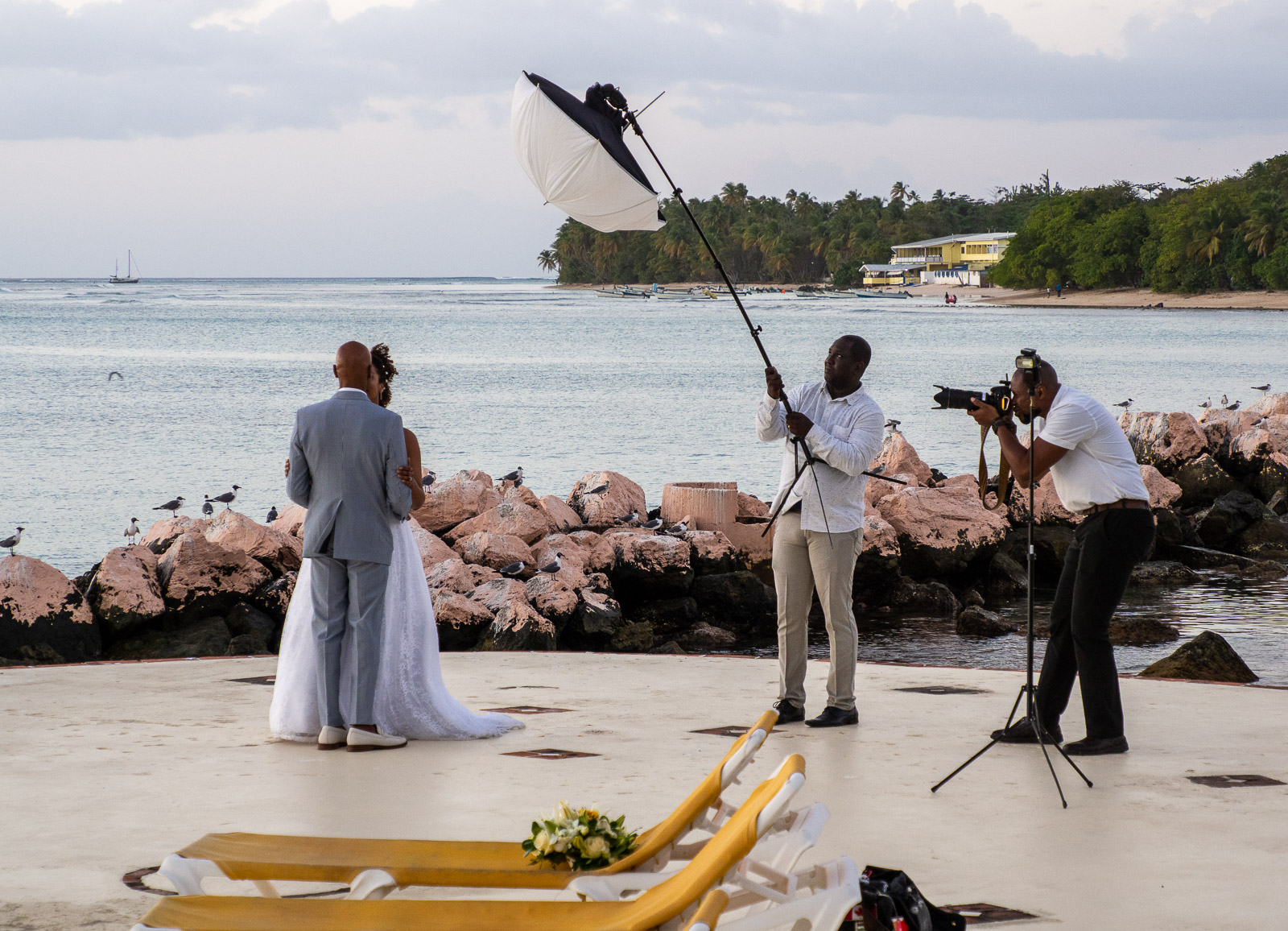 Resort oli selvästikin myös hääparien suosiossa. Saavuimme hotellille keskelle häitä, joita yritimme olla kovin paljoa häiritsemättä. Auringonlaskun aikaan hääpari oli siirtynyt aallonmurtajalle ikuistettavaksi.