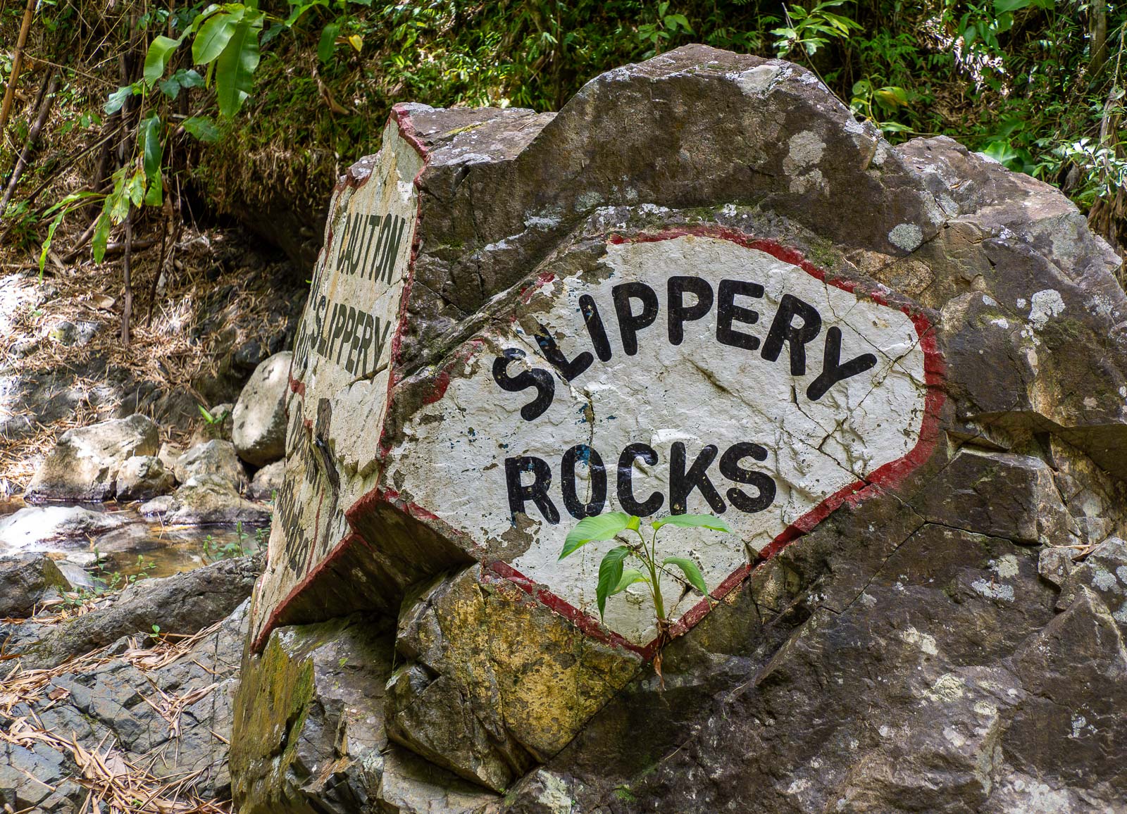 Toinen pienen saarikierroksemme pääkohteeksi mieltämäni kohde oli kävelyretki saaren suosituimmalle vesiputoukselle. Kysyin aamulla oppaaltamme lähtiessämme, että selviänkö päivästä rantasandaaleilla, kun olin unohtanut vaihtaa aamiaisen jälkeen tukevammat kengät jalkaani ja hän vilkasi Birkenstockin sandaalejani ja totesi, että kyllä. Viimeisiä kivisiä nousuja ja laskuja putoukselle kiivetessäni olin kyllä vähän eri mieltä asiasta, mutta … selvisin.