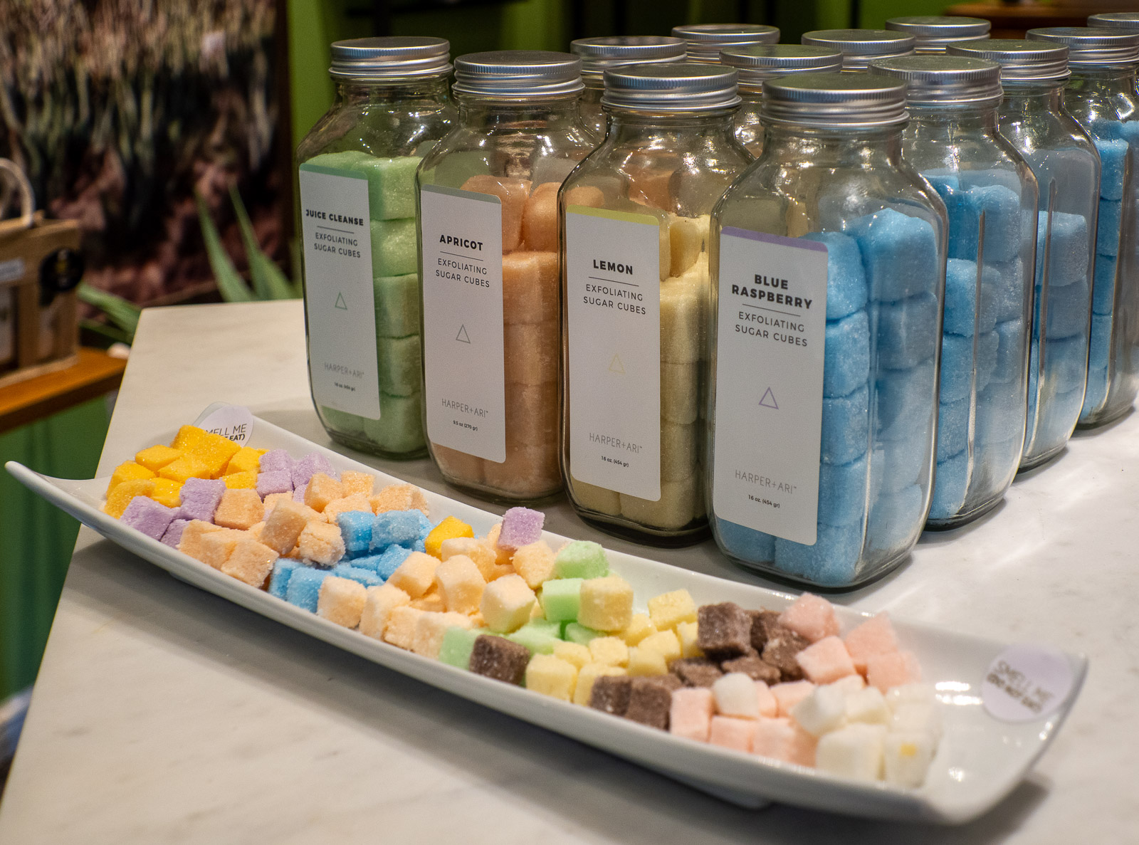 Aloe veeran esittely alkoi pellon laidalla tuotanto- ja museorakennuksen ulkopuolella: oli oikeasti mielenkiintoista nähdä miten lehdistä eroteltiin väritön geelimäinen sisus jatkojalostusta varten. Myöhemmin näimme tuotannon muutkin vaiheet ja saimme, luonnollisesti, tilaisuuden halutessamme ostaa tehtaan tuotteita. Mielenkiintoisimmalta vaikuttivat isojen sokeripalojen muotoiset suihkussa käytettävät “kuorintapalat”. Jos niitä olisi myyty lajitelmana, purkillinen eri värisiä ja siis eri tuoksuisia, olisin ostanutkin – nyt tyydyin pihistämään muutamia pienempiä esittelykappaleita, sillä ison lasipurkillisen ostaminen vain yhtä lajia ei inostunut. Aloe veeran “teho” on uskon asia, mutta näinhän on lähes kaiken kosmetiikan kanssa – ja kuulemma aloe veera -voiteita käytetään jopa lääketieteessä, esimerkiksi haavojen ja palovammojen jälkihoidossa.