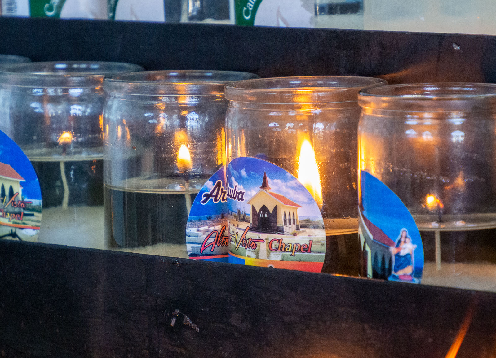 Keltainen kappeli kukkulalla rakennettiin 1952, mutta samalle paikalle, jonne venezuelainen lähetyssaarnaaja rakensi ensimmäisen kappelin jo vuonna 1750 aloittaessaan Aruban intialaisten käännyttämisen kristinuskoon. Pieni katolinen kappeli oli melko lailla turistilaumojen valtaama kun pääsimme sinne asti eikä nyt kappelina mitenkään kovin erityinen: pieni ja koruton. Parkkipaikalla kappelin edustalla kukoisti matkamuistokauppa.