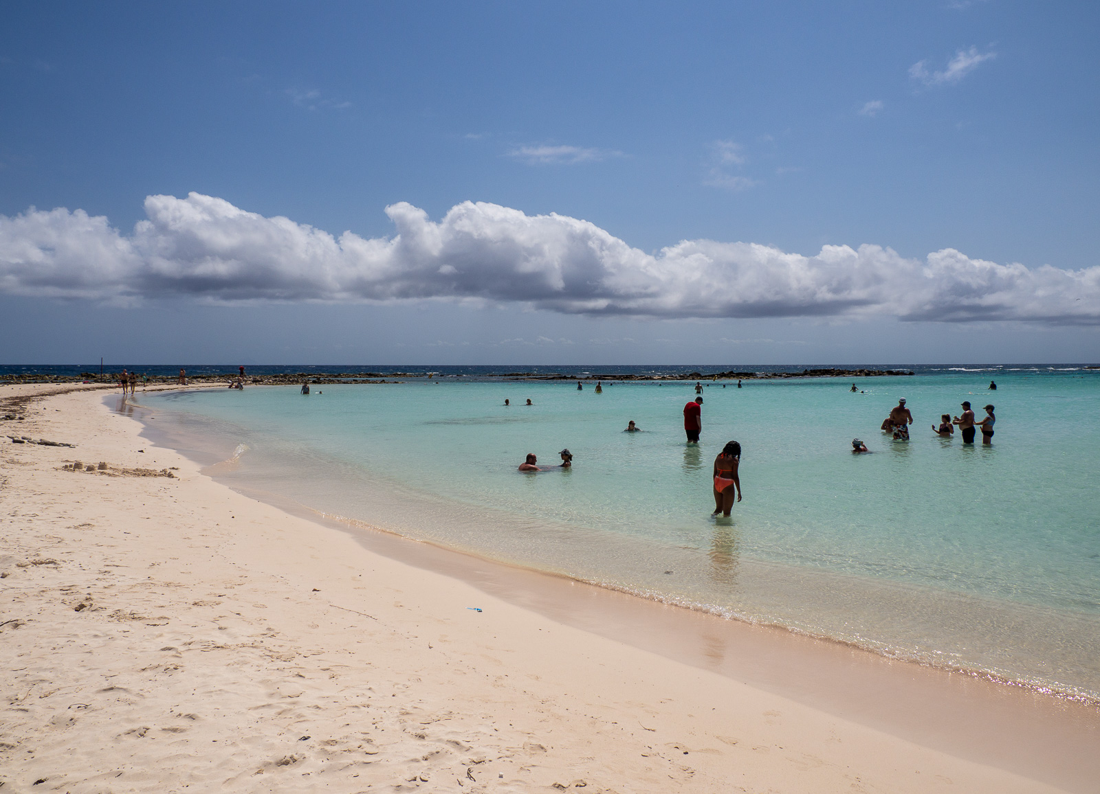 Aruballa risteilyllä poikennut ystäväni esitti ennen päivän retkeämme arvauksensa, että missä tulisimme käymään. Lista osoittautui pääosin samaksi, kappeli taisi olla meillä ainoa lisäpysähdys ja San Nicolakseenhan mekään emme pysähtyneet. Me pysähdyimme Baby Beachin rannalle – he olivat pysähtyneet Eagle Beachin rannalle.