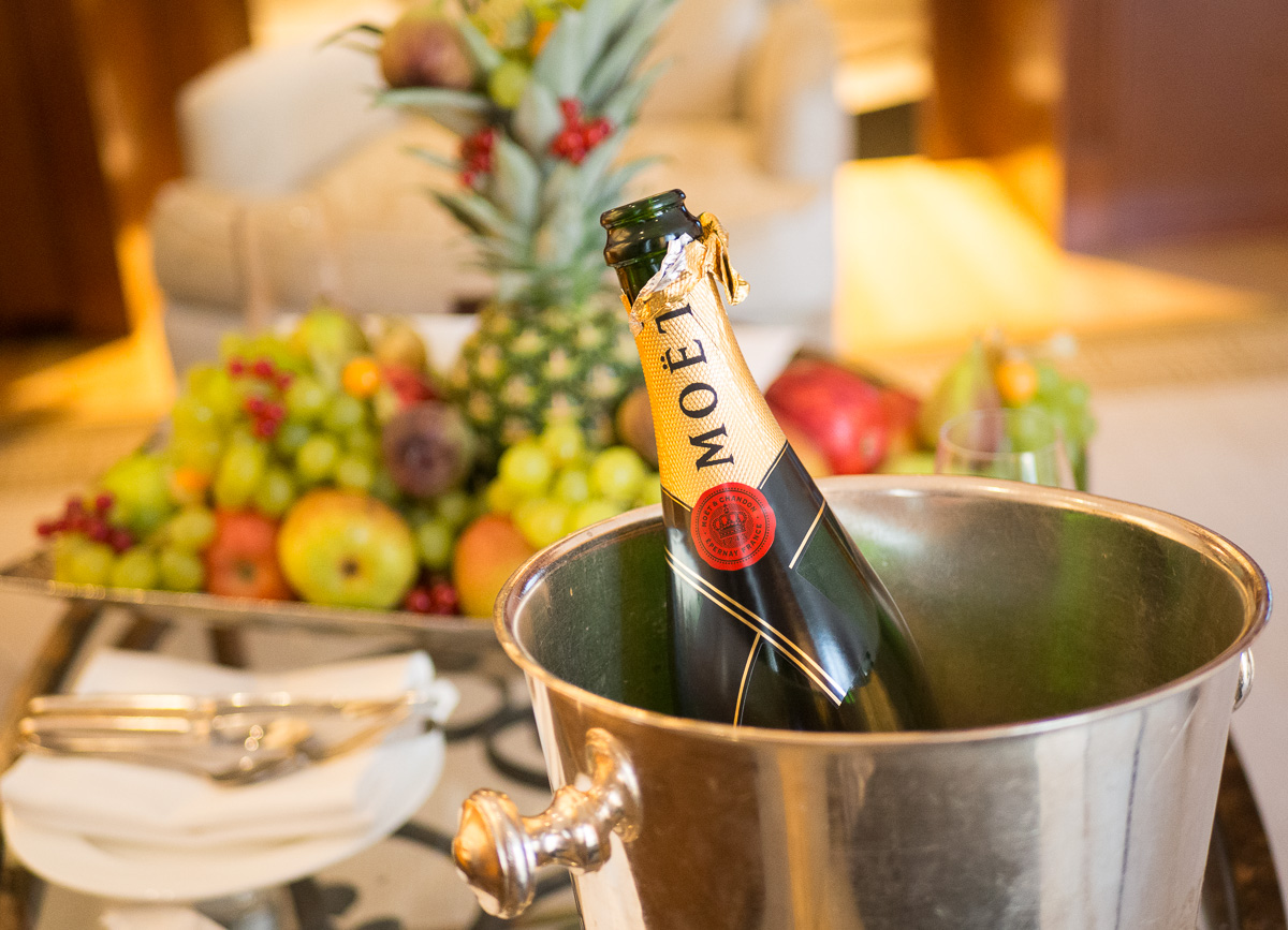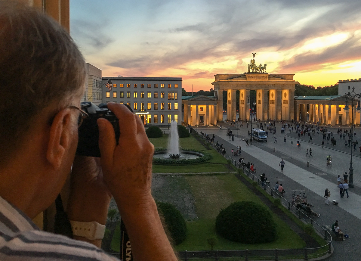 Idea vierailusta Hotel Adlonissa sen sijaan lähti televisiosarjasta ja se iti useamman vuoden ennen toteutumistaan keväällä 2018. Emme yrittäneetkään pienenä suomalaisena matkablogina hotellin kanssa blogiyhteistyötä vaan varasimme hotellista tavallisen huoneen, joka sekin maksoi lähes 500 euroa yö. Otin kuitenkin yhteyttä hotelliin ja kerroin kiinnostuksestani siihen ja siitä, että tarkoituksenamme on myös kirjoittaa hotellista blogiimme ja kysyin, että voisiko joku hotellin puolelta esitellä sitä meille vähän laajemmin. Tämä kuulemma onnistuisi – ja sen lisäksi hotelliin saapuessamme saimme myös kuulla, että meidät sijoitettaisiin sviittiin, joka nyt sattui olemaan vapaana. Näköalat Brandenburg Torille olivatkin sitten huikeat, etenkin illalla ja yöllä. Päivällä kun Lasse avasi isot ikkunat ja katseli alas aukiolle niin siellä olevat turistit kääntyivät katsomaan häntä, osa vilkutti, osa suuntasi kameransa häntä kohti. Monet Berliinissä vierailevat julkkikset, aina kuninkaallisia myötä, kun tapaavat majoittua Hotel Adloniin, joten ilmeisesti aina kannattaa varmuuden vuoksi reagoida!