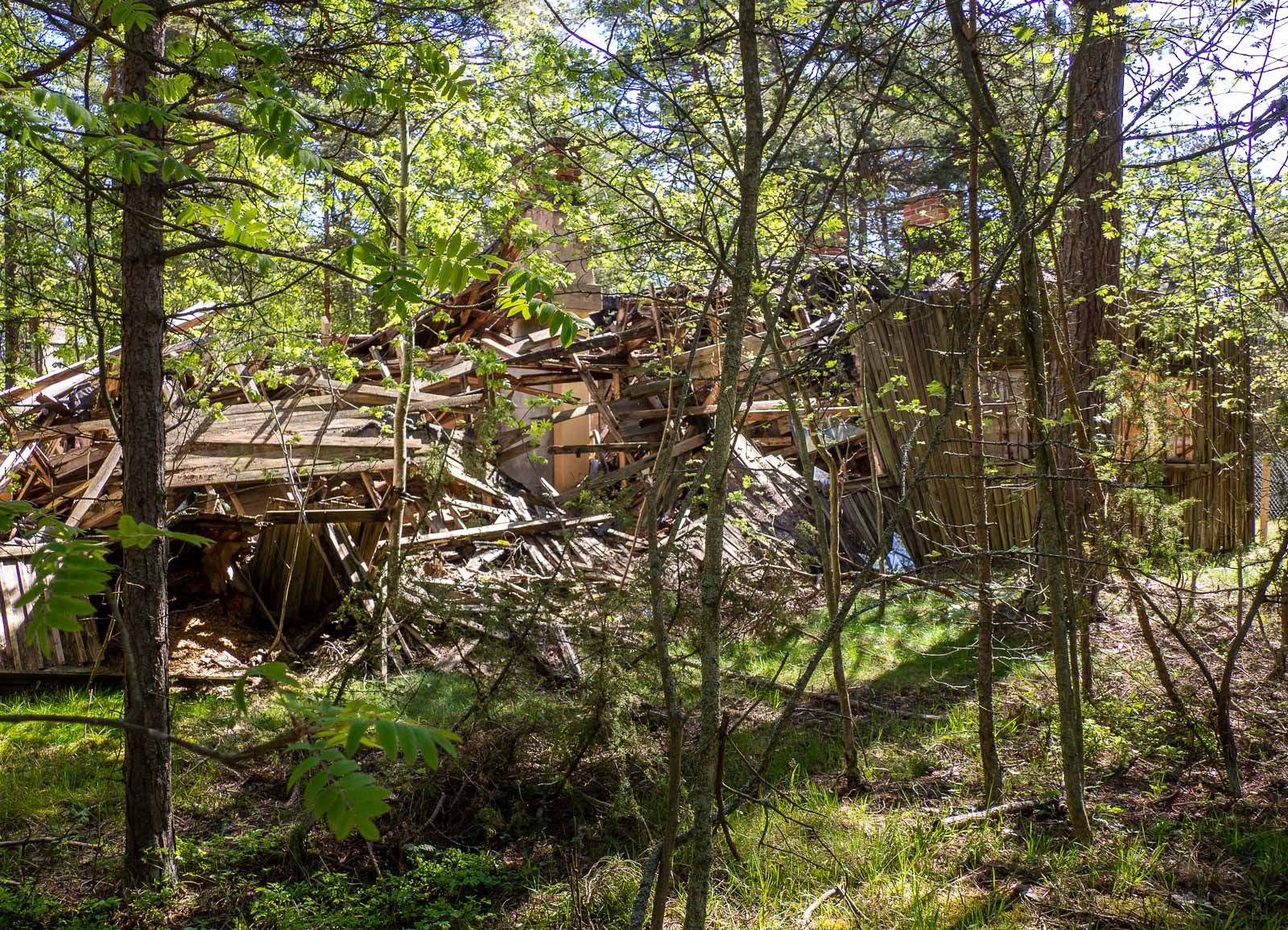 Vanhat rakennukset, olivat ne sitten perua venäläisten tai saksalaisten tai työsiirtolan ajalta ovat enimmäkseen jo pahasti romahtaneita ja alue onkin siltä osin tiukasti aidattu, sillä varomaton liikkuminen raunioiden seassa olisi oikeasti vaarallista. Toisaalta luontopolku kulkee luonnonsuojelualueelta eikä polulta muutenkaan saisi poistua, ei metsään, ei rannalle, eikä raunioille.
