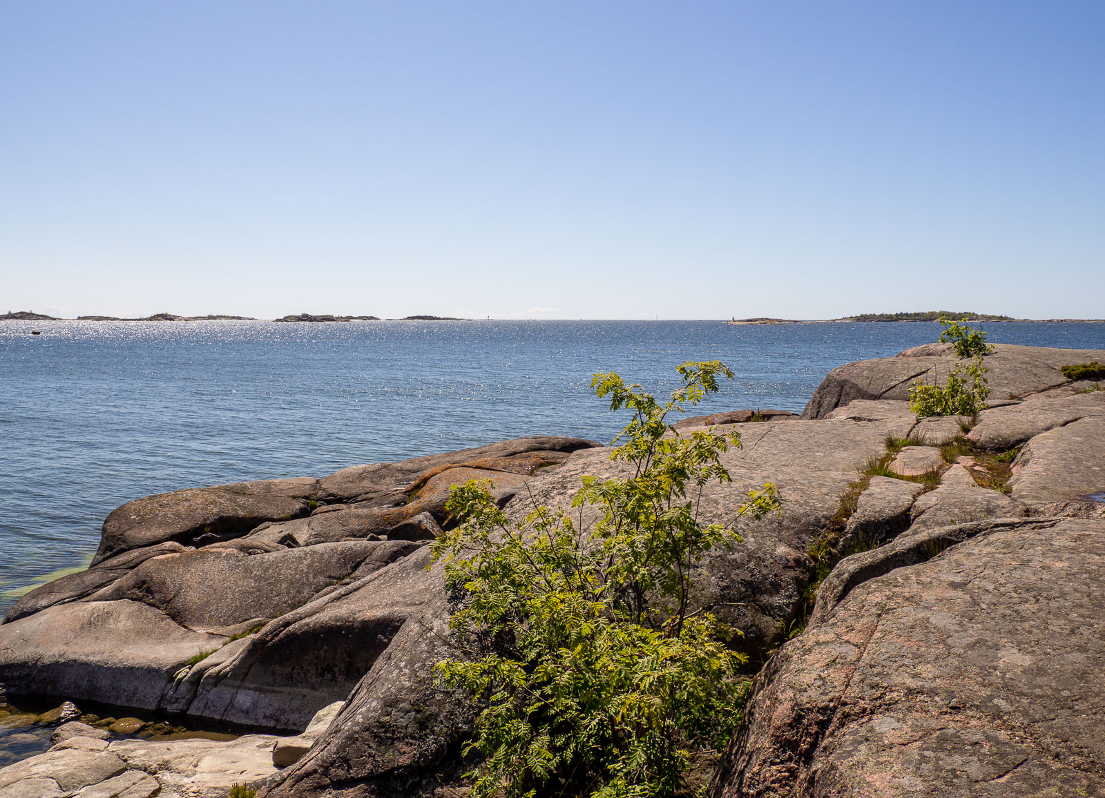 Sopivasti juuri saavutettuamme Suomen eteläisimmän pisteen kevään meille ensimmäiset pääskyset lensivät yllämme – kesä ja meri ja onnistunut luontoretki, mikä ihana yhdistelmä! Aikamme merta ja saavutustamme ihailtuamme aloitimme paluumatkan ja kiipesimme ensin kallioilla olevien pöytäryhmien luo ja pidimme mehutauon – hääpäivästä huolimatta emme päiväretkelle viitsineet kuljettaa mukana kuohuviiniä pienessäkään lasipullossa, ehtihän sen sitten myöhemminkin.