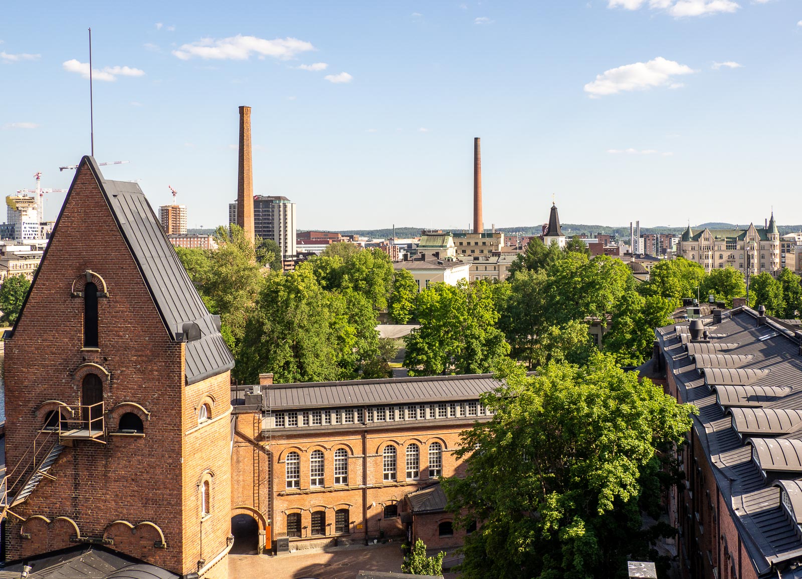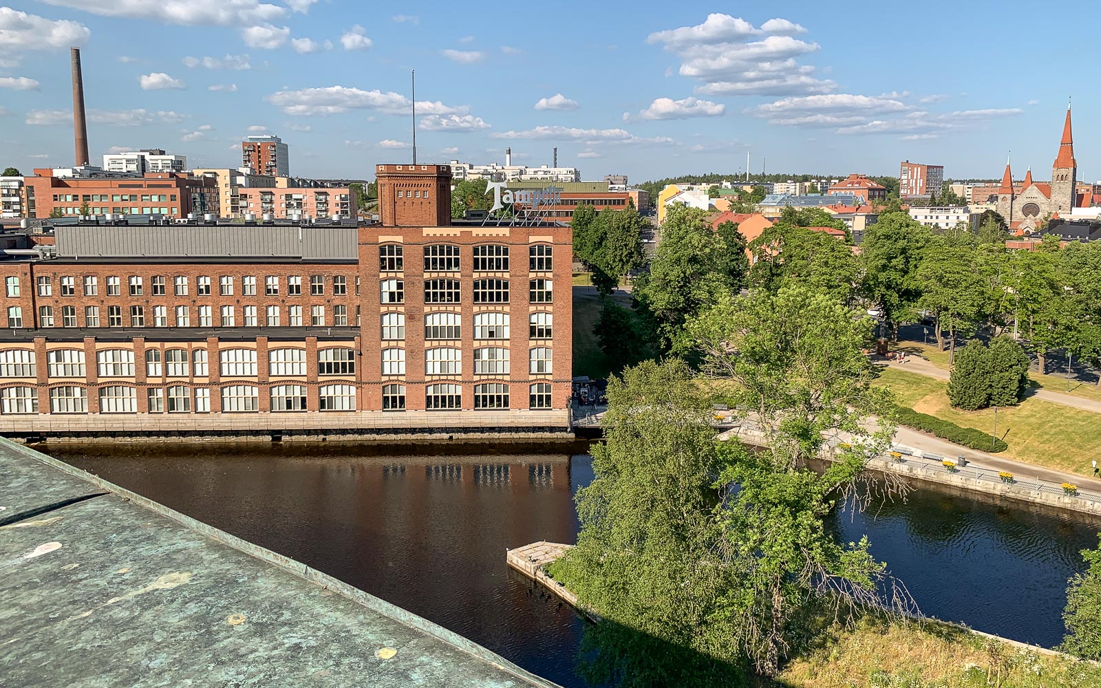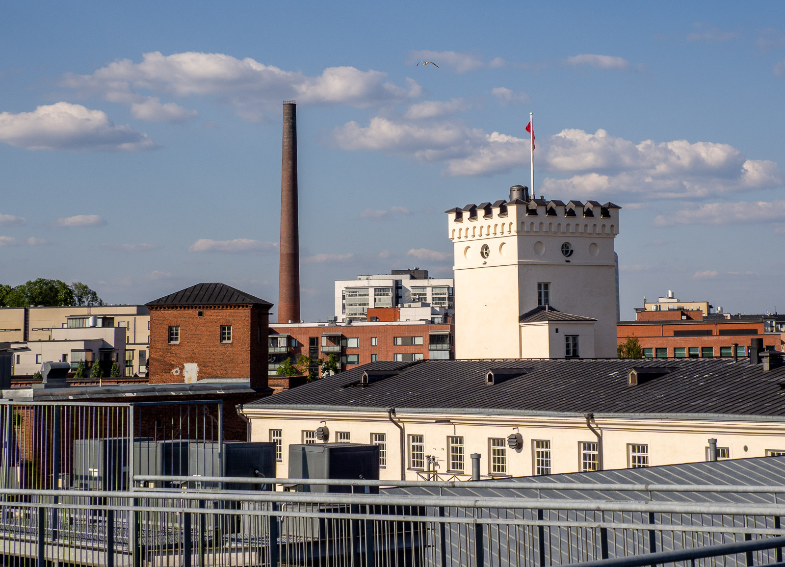 Näkymät Tampellan suuntaan, Tuomiokirkolle ja Tampereen vanhalle paloasemalle ovat jo näkyminä vaikuttavat. Grand Hotel Tammer saattaa olla Tampereen kaunein hotelli, mutta yläilmoista punainen rakennus ei nyt ihan häikäise. Tarinat sen sijaan ovat kivoja: kieltolain aikaan tuossa hotellissa tarjoiltiin alkoholia melko julkisesti ja tarjoilun hoitivat alaikäiset, joita ei olisi voitu rangaista.