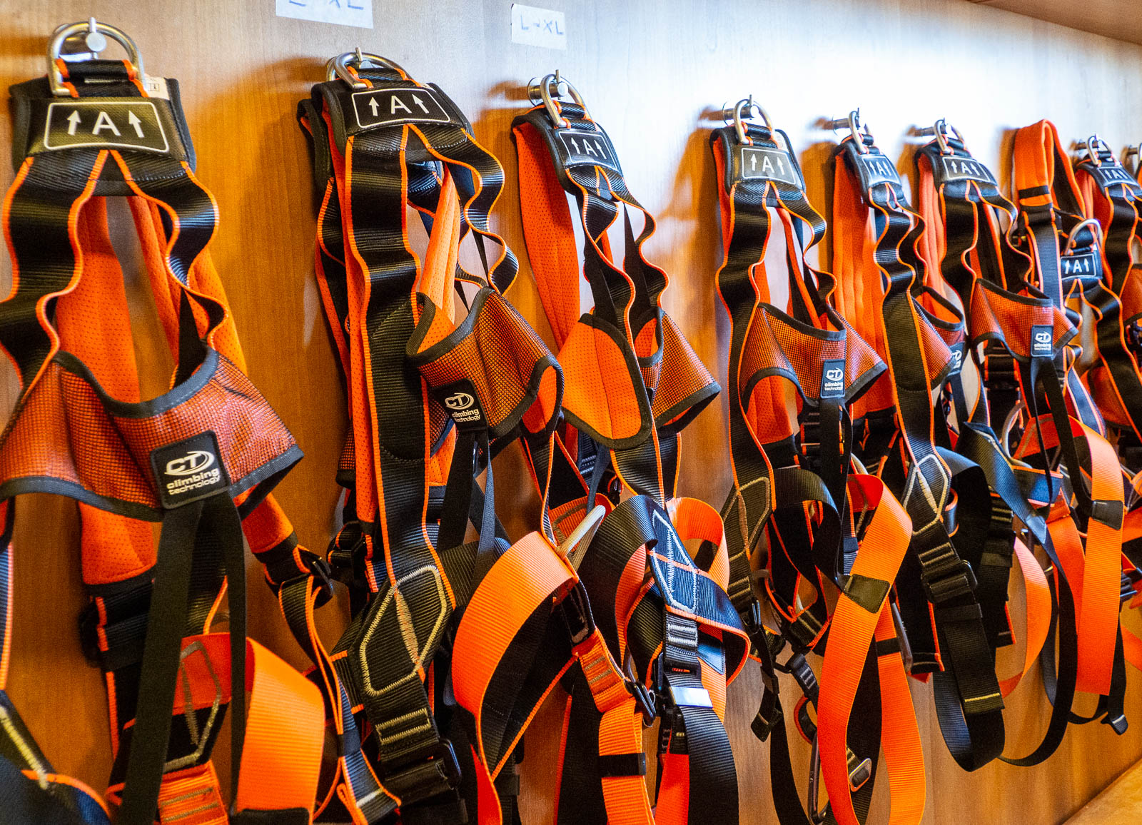 Harkitsimme hetken ja melkein toisenkin, että onkohan tuo, valjaat ja vaijerit, oikeasti meille, jo seniori-ikäiselle pariskunnalle, mutta päätimme heittäytyä ja uskaltaa!