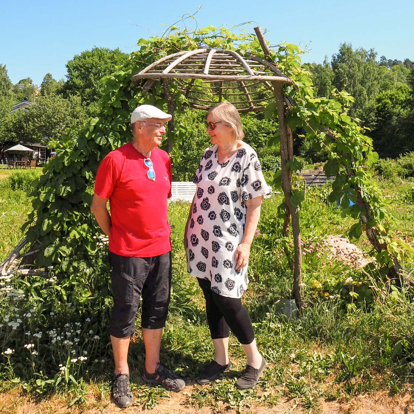 Tahmelassa on yhteispuutarhoja, esimerkiksi Kurpitsatalon kaupunkiviljelyalue, joka tähän aikaan kesästä loistaa kaikissa väreissä, kuten rannan pienet veneetkin.