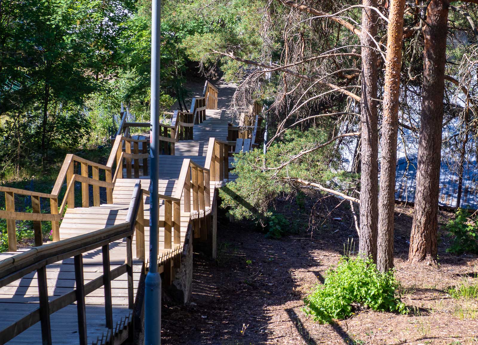 Ihan näin kevyesti tyyliin “jatkoimme sen jälkeen” siirtyminen brunssilta kävelyretkeen ei toteutunut, sillä Pispala on harju, jota pidetään jopa maailman korkeimpana soraharjuna. Harju kohoaa 82 metriä Pyhäjärven tasosta ja 64 metriä Näsijärveltä. Matkasimme aamulla Nyssellä Kalevasta Pispalaan, Rajaportin saunan pysäkille ja aloitimme päivämme kiipeämällä ensin portaat ylös harjulla ja sitten toiset portaat alas Pispalankadulle.
