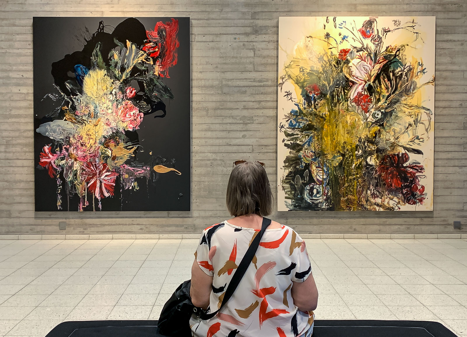 Heikki Marilan suuret kukkamaalaukset ovat jotain ihan muuta kuin asetelmamaalauksen perusteokset, pienikokoinen kukka-asetelma maljakossa. Tässä kahden teoksen parissa ei ole mitään pientä ja sovinnaista.