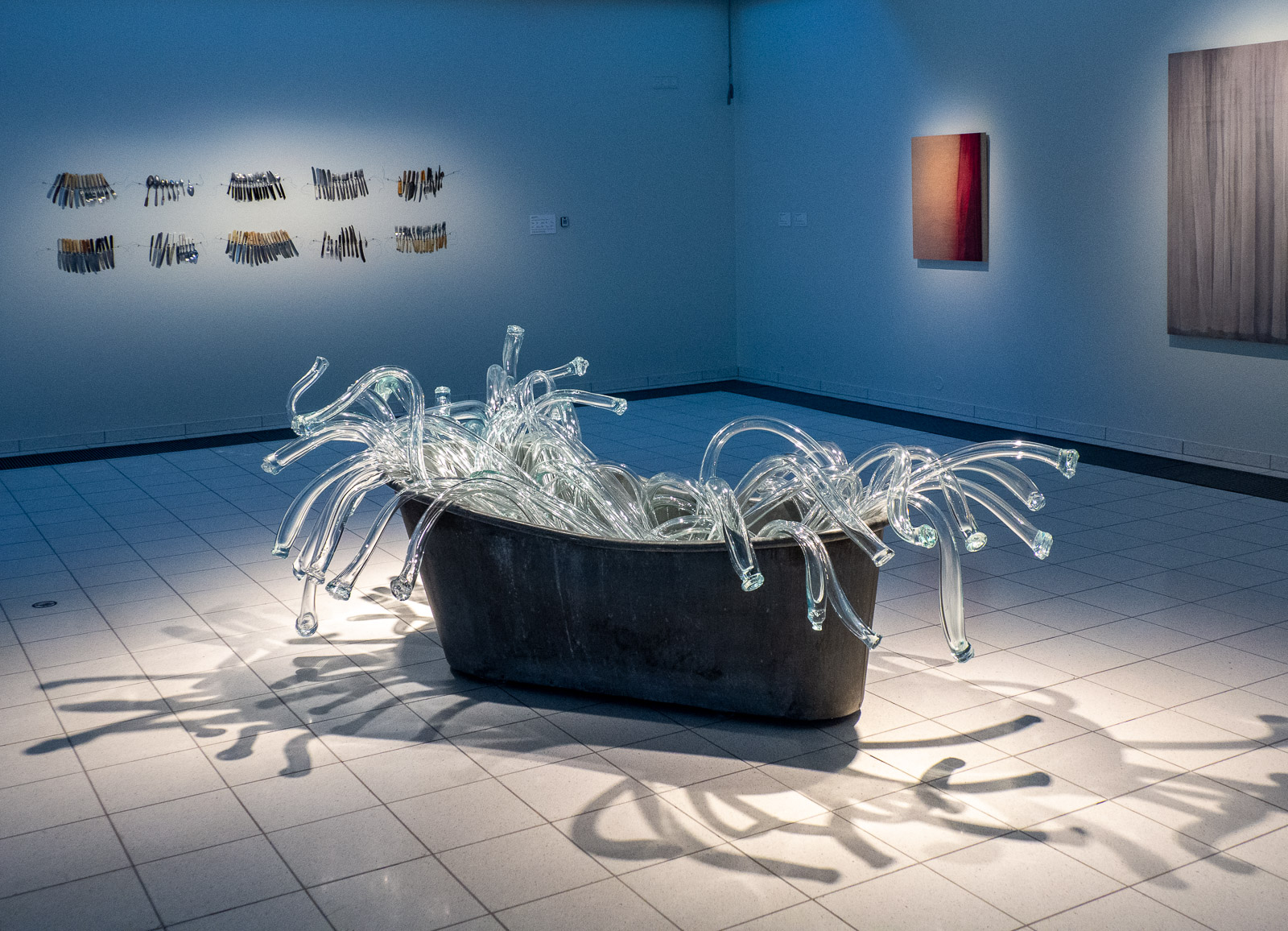 Hans-Christian Bergin lasiveistoksilla täytetyt kylpyamme kelpaa samoin taas sarjaan kauniit teokset.