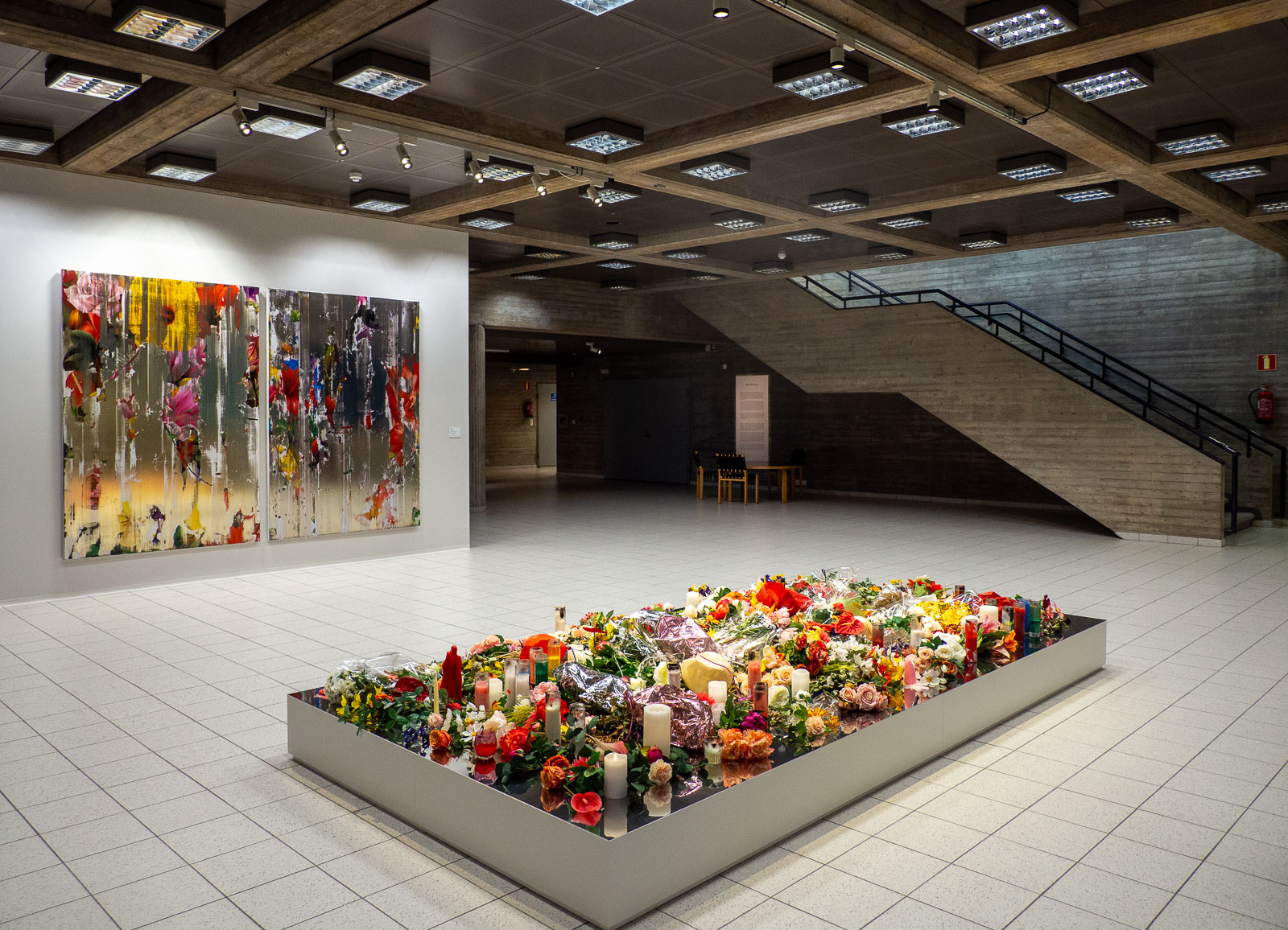 Nir Hodin iso installaatio I love you, Nina, innoittajana on kuulemma ollut Prinsessa Dianan kuoleman jälkeen Kensingtonin palatsin portille ilmestynyt kynttilä- ja kukkameri. Samassa tilassa oleva maalaus kätkee sisäänsä myös katsojan: kromipinnoitteesta peilautuu katsojan omakuva osana teosta.