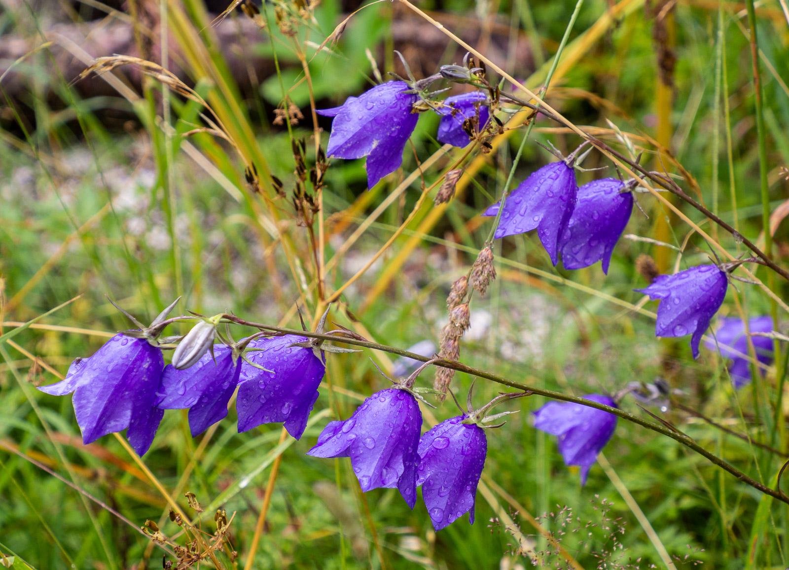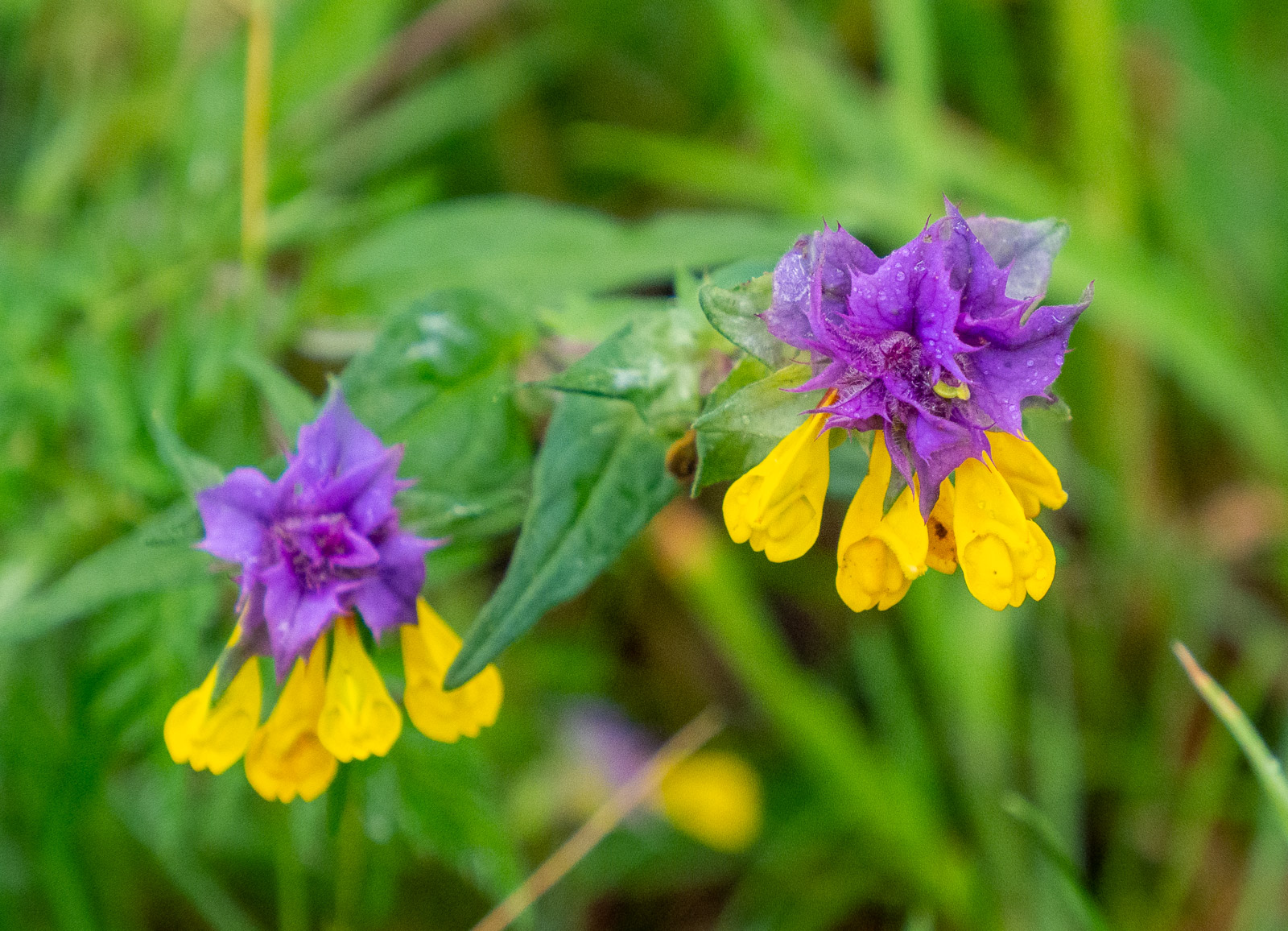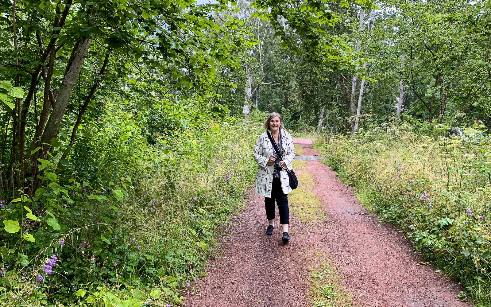 Perillä oli pieni parkkipaikka ja niemen kartta: luontopolun pituus olisi 1,6 kilometriä, eli juuri sopivasti pieneen jaloitteluun. Taivas näytti hiukan uhkaavalta, joten otimme sadetakit mukaan. Meille Ahvenanmaan luonto on aina ollut joko rantakallioita tai vehreää lehtomaisemaa ja Herröskatanin luontopolku on jälkimmäistä parhaimmillaan. Kesäkukat kukkivat polun reunoilla jos ei nyt kaikissa väreissä niin ainakin sinisen, lilan ja keltaisen kaikissa sävyissä. Pysähdymme ensimmäisten sinikeltaisten lehtomaitikoiden kohdalla, tällaisia ei Espoon rannoilla näe! Kukasta käytetään myös nimeä svenska flaggan värityksensä takia. Tarkkaan ottaen vain kukat ovat keltaisia, siniset “kukat” ovat tukilehtiä, eivät kukkia. Polun varrella kukkivat myös ainakin kissankellot ja kurjenkellot.