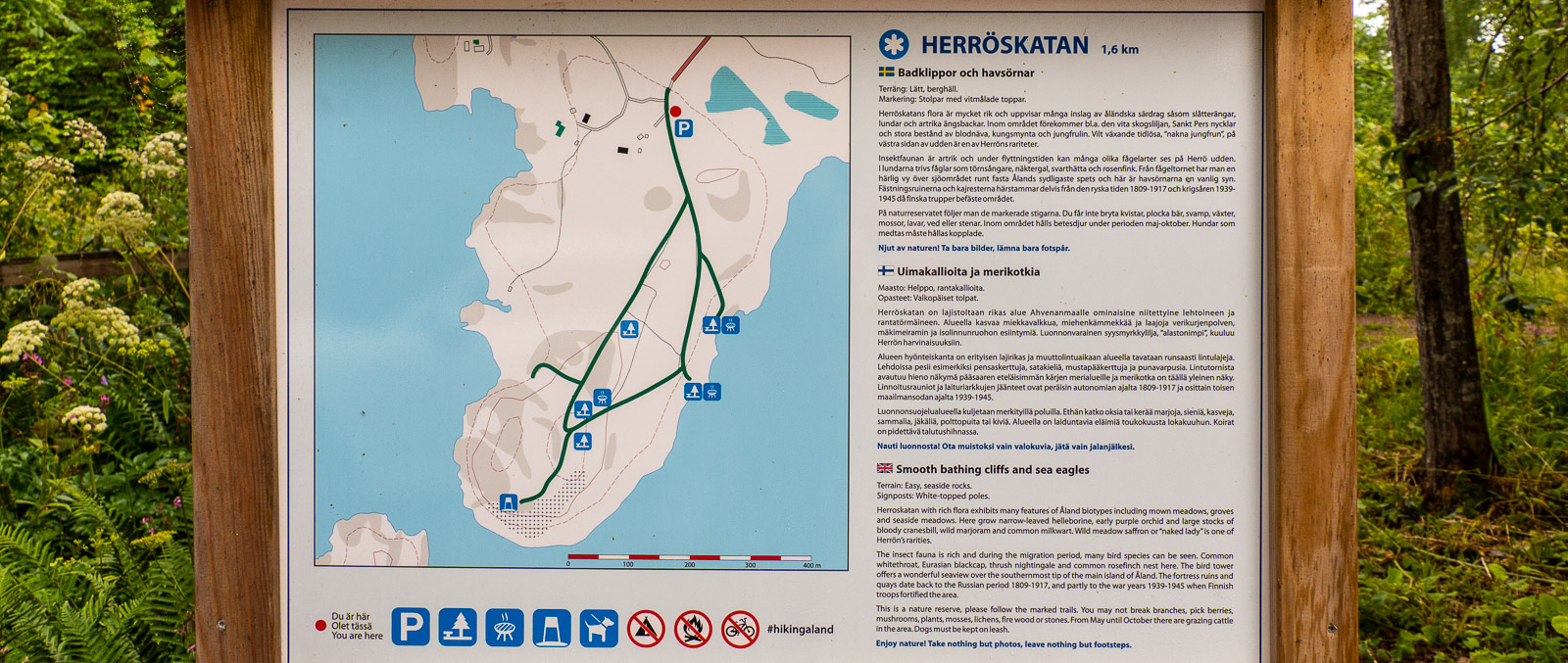 Ajatus myös lyhyestä kävelystä Ahvenanmaan luonnossa automatkailun lomassa tuntui etukäteen hyvältä idealta. Herröskatanin niemelle oli hiukan matkaa, Ahvenanmaan mittakaavassa, mutta tie niemen kärkeen oli perille asti loistokunnossa, joten parikymmentä kilometriä suuntaansa ei tuntunut sittenkään pitkältä.
