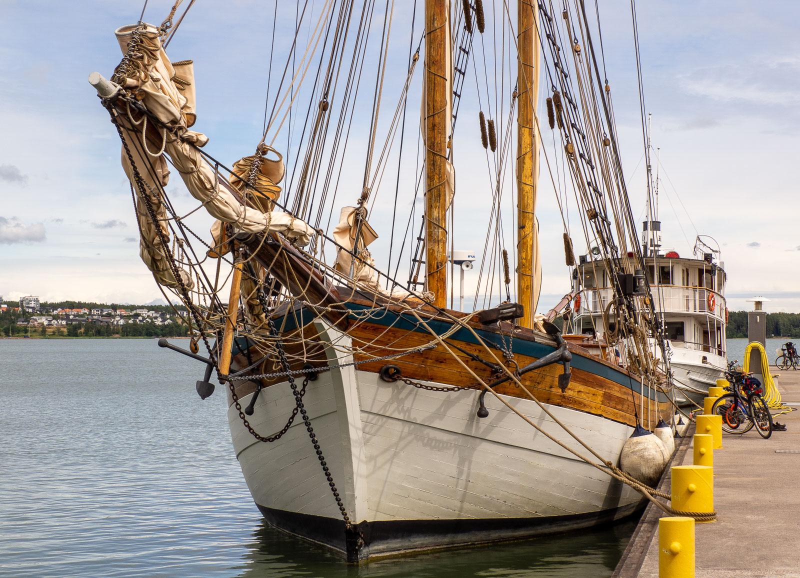 Baltic Queen saapui Maarianhaminaan yhdeksältä aamulla ja ainakin autolla olet kaupungissa muutamassa minuutissa. Autottomat voivat halutessaan jäädä laivaan aina klo 12:30 asti. Mutta jos kaipaat tekemistä aamun ensimmäisiin tuntiin, niin poikkea Maarianhaminan satamissa, isossa Itäsatamassa tai pienemmässä Länsisatamassa Pommern-laivan ja merenkulkumuseon kupeessa. Monethan saapuvat, normaalikesinä, niin Suomesta kuin Ruotsista Ahvenanmaalle ja Maarianhaminaan omalla veneellä. Nyt ruotsalaisia veneitä näkyi vähän, siitä huolimatta, että varsinaista rajavalvontaa niiden osalta ei enää ole. Satamissa on oma tunnelmansa ja toinen toistaan upeampia veneitä!