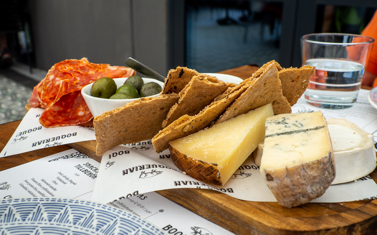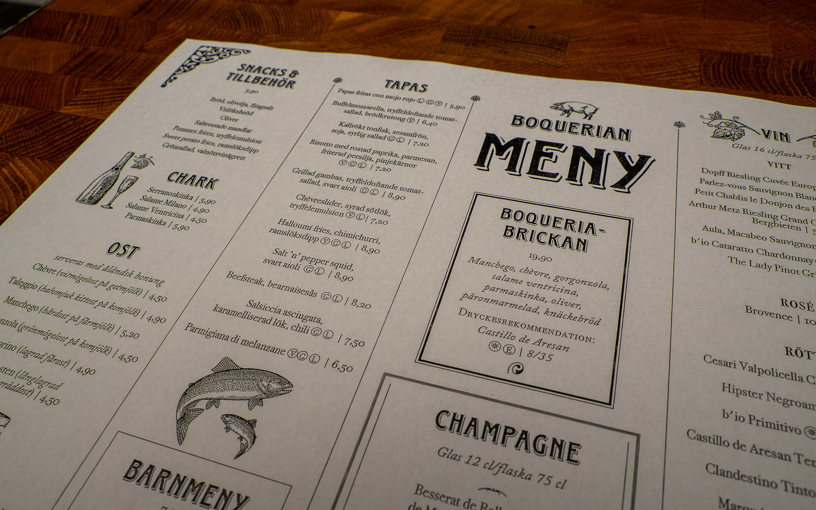 Tapas-ravintola Boquerian on yksi kaupungin uusimpia ja näyttävimpiä ravintoloita ja päivän kierroksen jälkeen olikin myöhäisen lounaan virkaa toimittavan napostelun aika. Ravintola on kuin tehty koronakesän tarpeisiin, sillä vaikka sen sisätilat ovat pienet, niin terassi levittäytyy isolle alueelle. Maarianhamina ei ollut kovin ruuhkainen ruotsalaisten turistien puuttuessa, mutta silti ilmeisen hyvin paikkansa lunastaneessa ravintolassa oli ihan paljon ihmisiä, mutta ei mitenkään iholle asti.