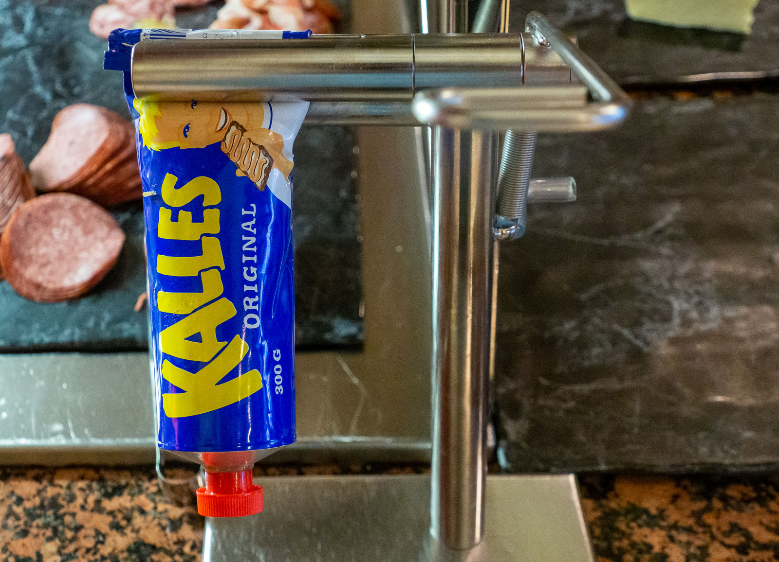 Löytyi se Supermarketkin lopulta ja kuohuviinihyllyllä melkein kiljahdin ilosta: viime syksynä kannoimme Rabarbrata Kaubamajasta Tallinnan kaduilla repuissamme, kun sitä juuri silloin ei laivalta löytynyt, mutta nyt löytyi myös Maarianhaminan reitiltä! Suosikkisuklaatakin – no suklaa ei nyt ehkä ole ihan gourmet-tasoa, mutta näitä pieniä “suklaalaukkuja” on vaikea vastustaa – löytyi tälläkin kertaa.