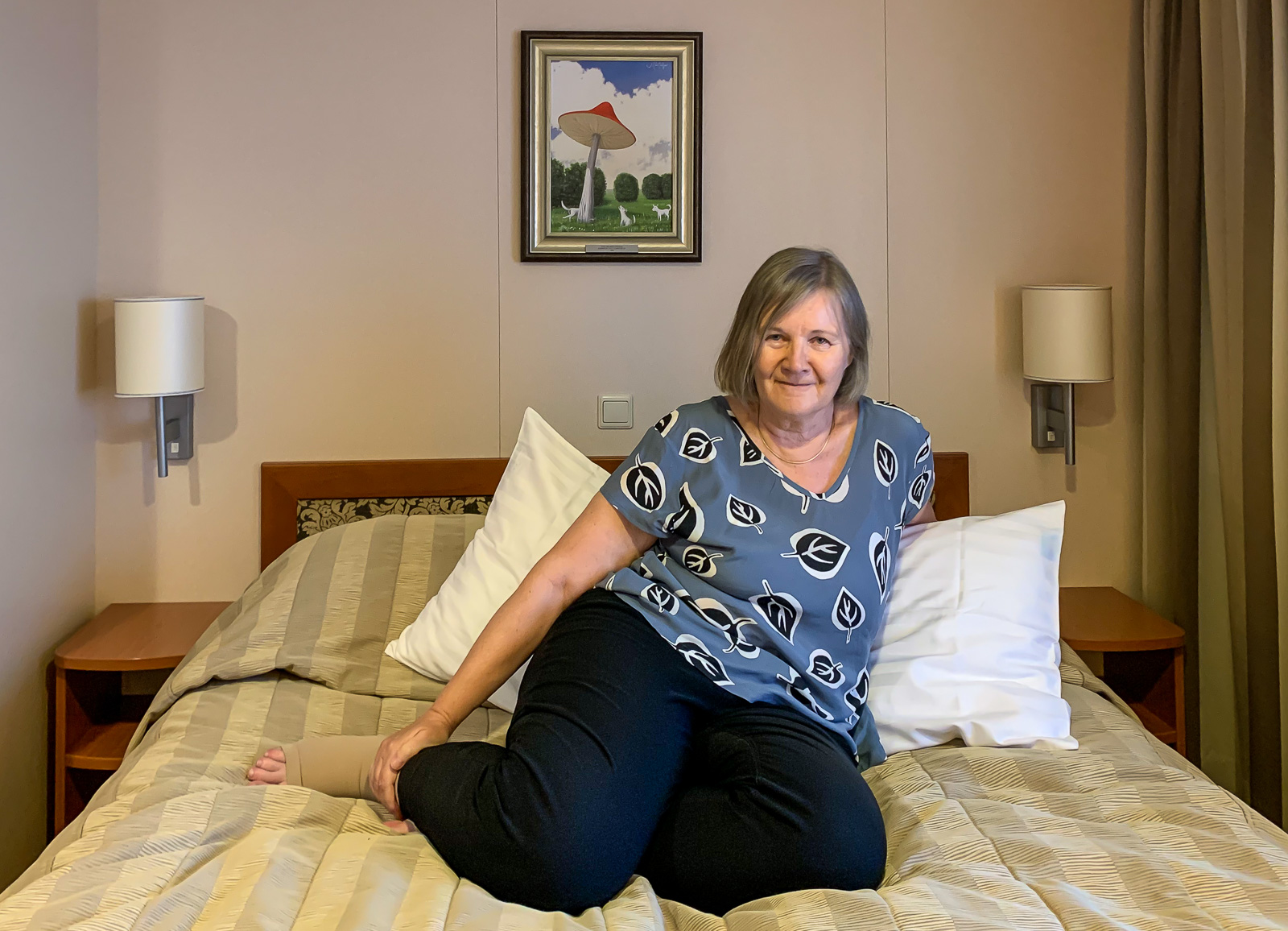 Iän myötä olen entistä vahvemmin omaksunut periaatteen, että miksi lähtisin matkalle ankeampiin oloihin kuin kotona, joten vaikka risteilyllä Maarianhaminaan viivyimmekin laivassa vaan kaksi yötä, niin mieluiten nukun ne kaksi yötä kuin olisin kotona nukkunut. DeLuxe-hytissä on parisänky, pieni oleskeluryhmä ja työpöydäksikin kelpaava pöytä. Minibaarin sisältö kuuluu matkan hintaan ja välipalaksi voi halutessaan tilata hyttiin ennakolta pienen hedelmäkorin. Hyvinkin siis kodinomaiset olosuhteet, jääkaappia ja pientä välipalaa myöten. Merinäköala on kyllä aavistuksen verran parempi kuin kotona.