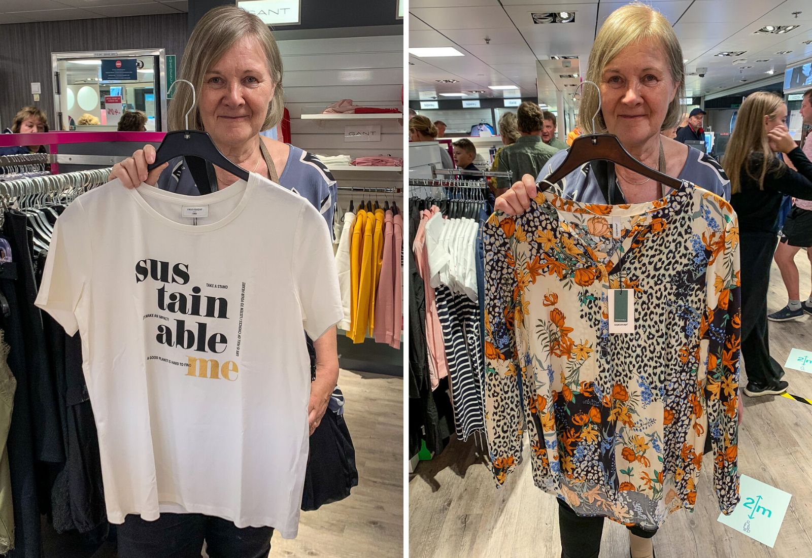 Ennen Supermarketin löytymistä “eksyimme” myös hetkeksi tutkimaan muotipuolen tarjontaa, sillä esimerkiksi viime kesänä Tukholman reissulta mukaan tarttui Freequentin neuletakki ja Desigualin viitta, eli laivan merkki- ja kokovalikoimat ovat mielestäni yllättävänkin hyvät ja laajat.