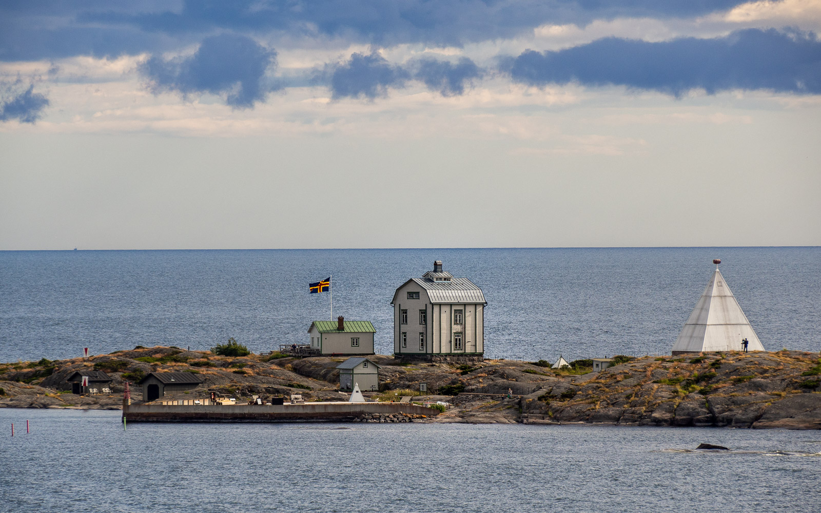 Ulosajo autokannelta aamulla sujui joutuisasti ja tallustelimme Itäsatamassa jo 9:15. Takaisin laivalla piti olla viimeistään 17:45, mutta palasimme jo vähän viiden jälkeen – olimme vaan ehtineet jo tekemään kaiken mitä olimme suunnitelleet. Paluumatkan illallisvarauksemme oli kuitenkin vasta klo 20, joten meillä jäi kivasti aikaa seurata laivan lähtöä Maarianhaminasta ja säänkin jo siinä vaiheessa suosiessa katselimme pitkään merta yläkannelta, aina Kobba Klintarna -luodolle asti. Kobba Klintarna -luodolle tehdään päiväretkiä Maarianhaminasta – ehkä sitten ensi kerralla? Sen verran kivan näköiseltä tuo paikka näytti ainakin näin alkuillasta.